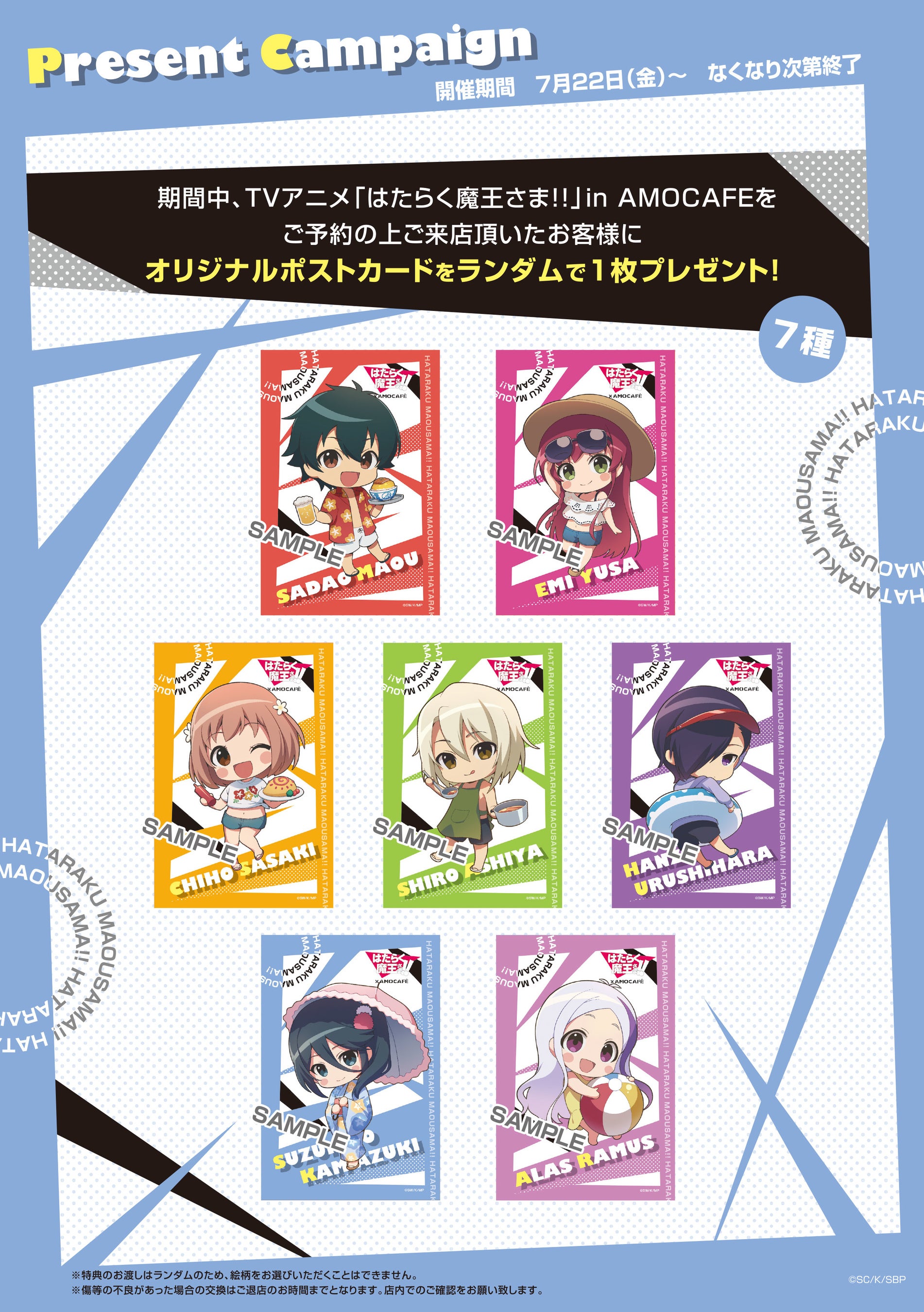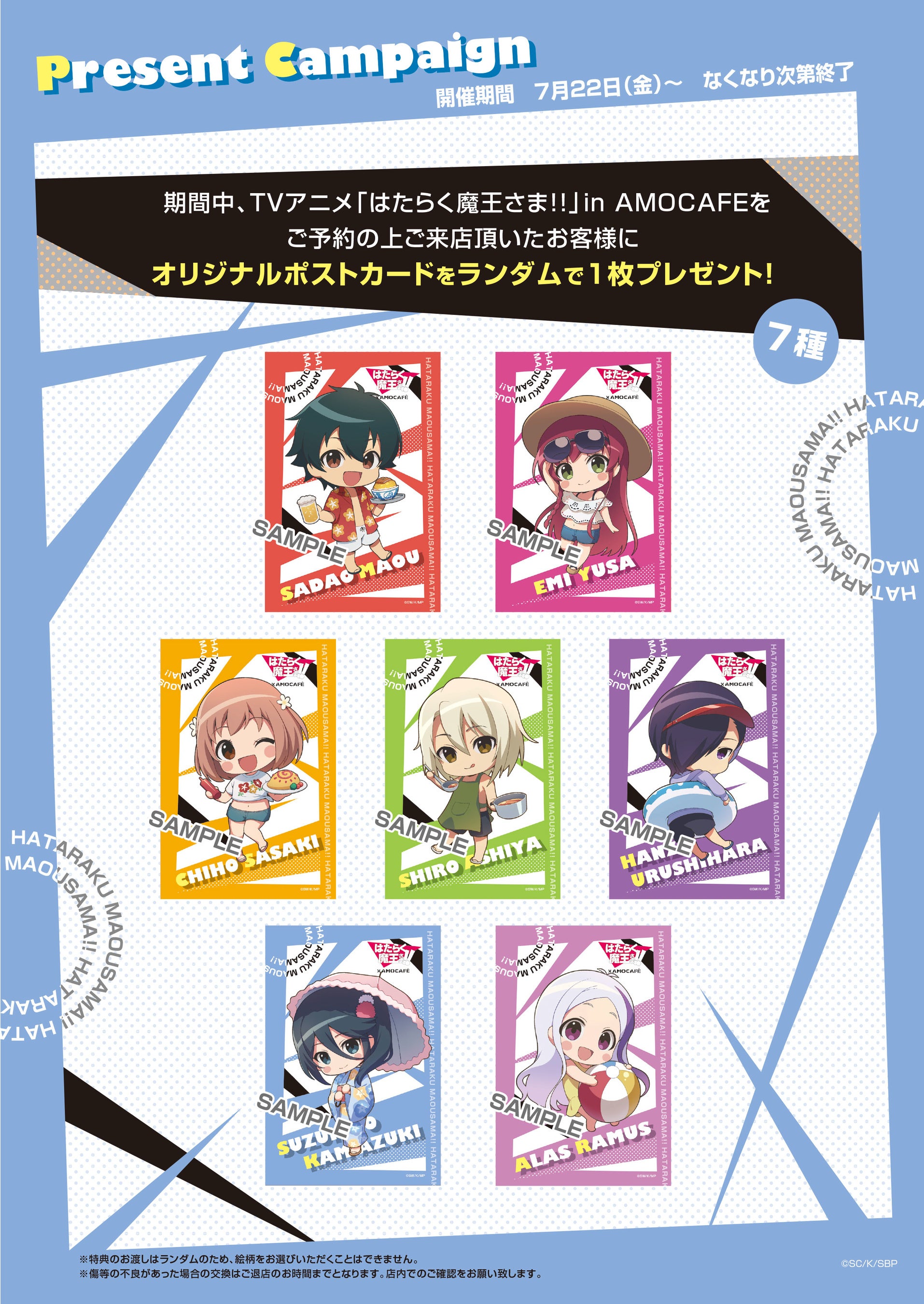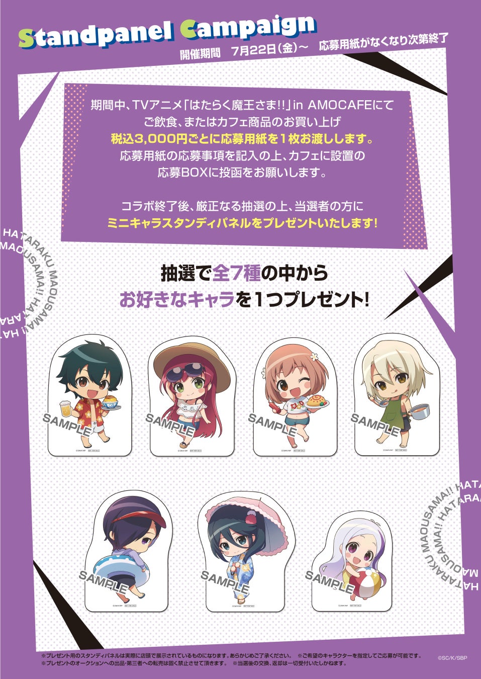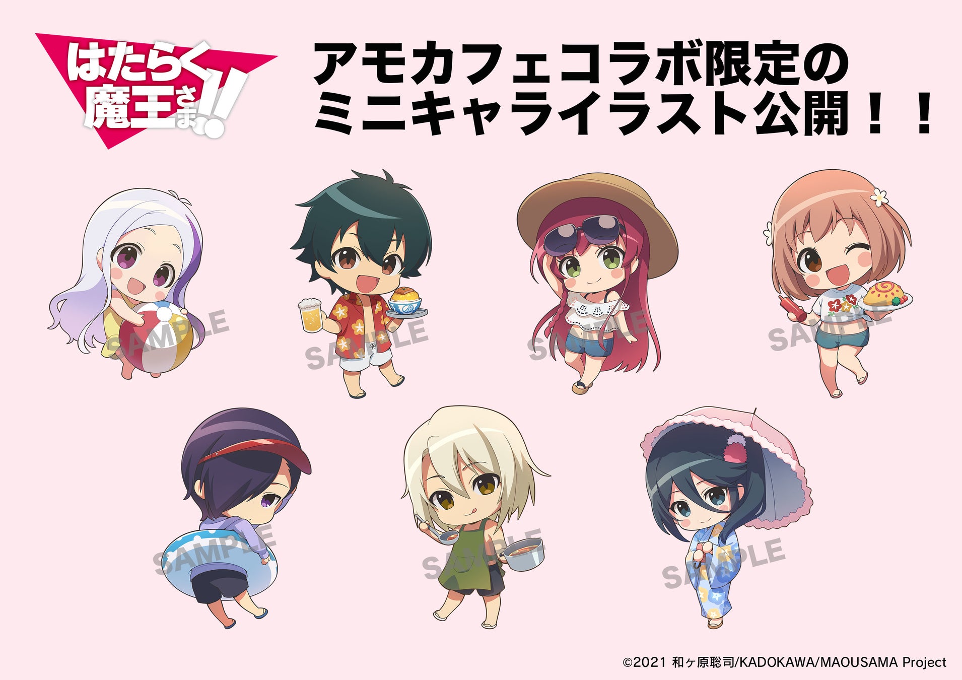 「TVアニメ『はたらく魔王さま!!』×AMOCAFE池袋店」コラボカフェが池袋で開催中!海の家衣装のミニキャラがカツドゥーンでおもてなし、WEBSHOP限定描き下ろしイラストも登場!