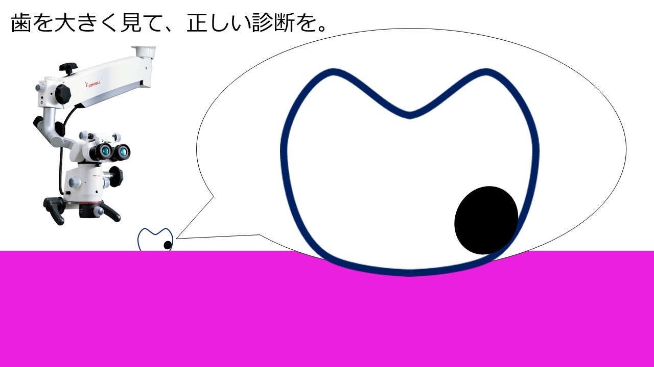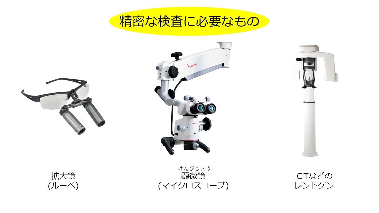 みつおデンタルクリニックでは、顕微鏡(マイクロスコープ)と拡大鏡(ルーペ)を使用して、歯を大きく見て、時間をかけて精密に検査しています。また、レントゲンでの検査も合わせて行います。