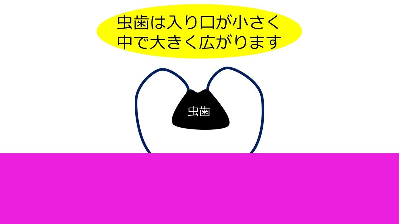 虫歯には特徴があります。虫歯の入り口は小さく、歯の中で大きく広がります。