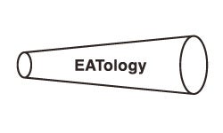 私たちがミッションにも掲げる「たべごと」をビジュアル化したもの EATology(EAT+Tecnology)という造語と、 食べ物が身体を通って未来に繋がる、というイメージのデザイン。
