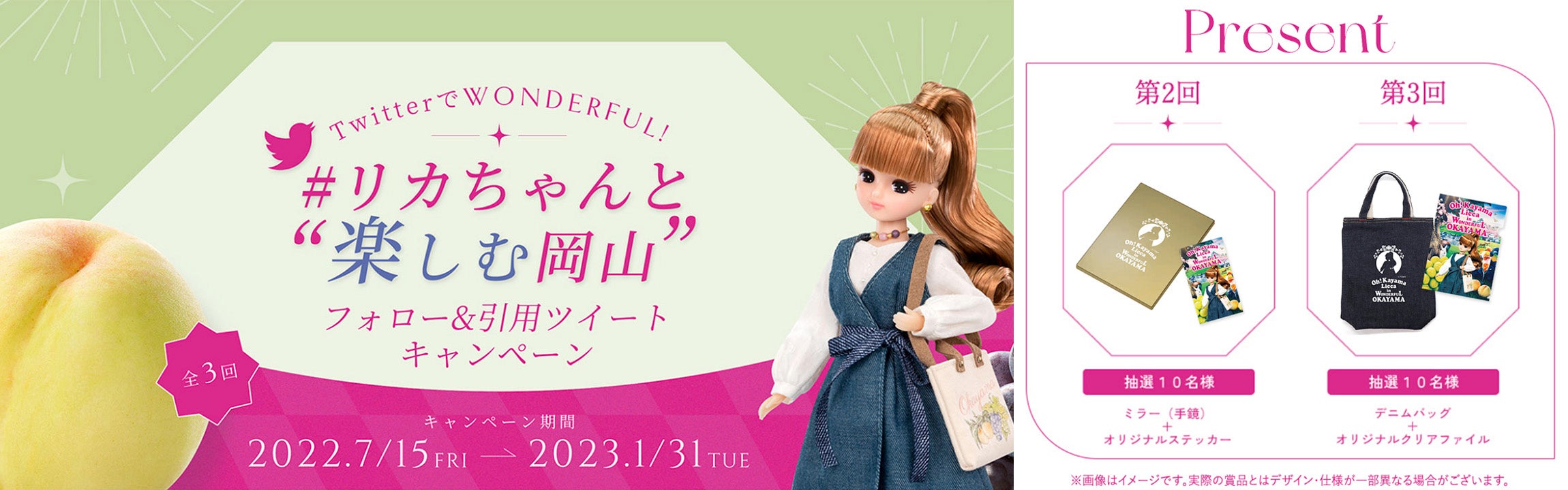 ● Twitterキャンペーン「#リカちゃんと楽しむ岡山 フォロー&引用ツイートキャンペーン」