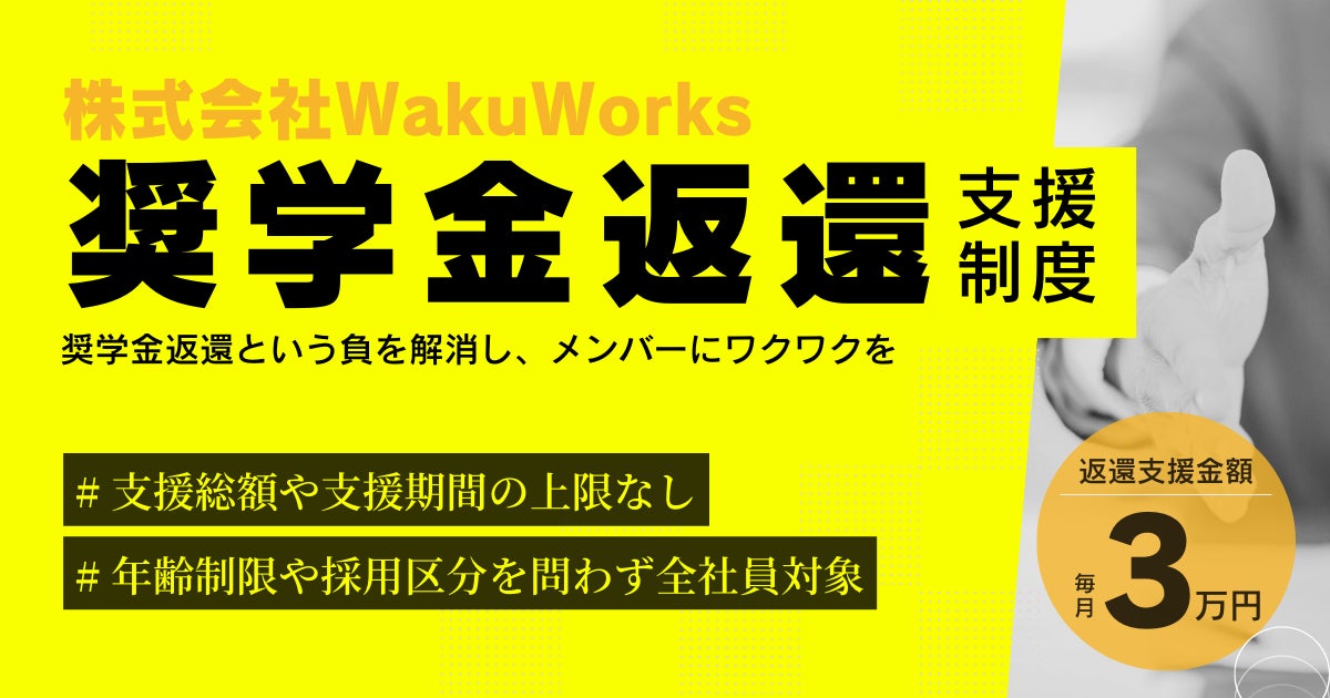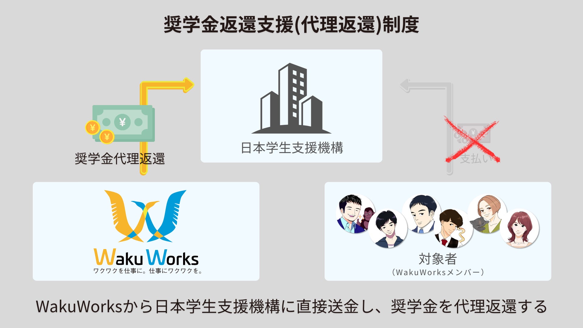 株式会社WakuWorks(本社:東京都千代田区、代表者:鈴木悠介/以下、「当社」)は、福利厚生の一環として独立行政法人日本学生支援機構(JASSO)の貸与奨学金を対象とした奨学金返還支援(代理返還)制度を導入したことをお知らせ致します。