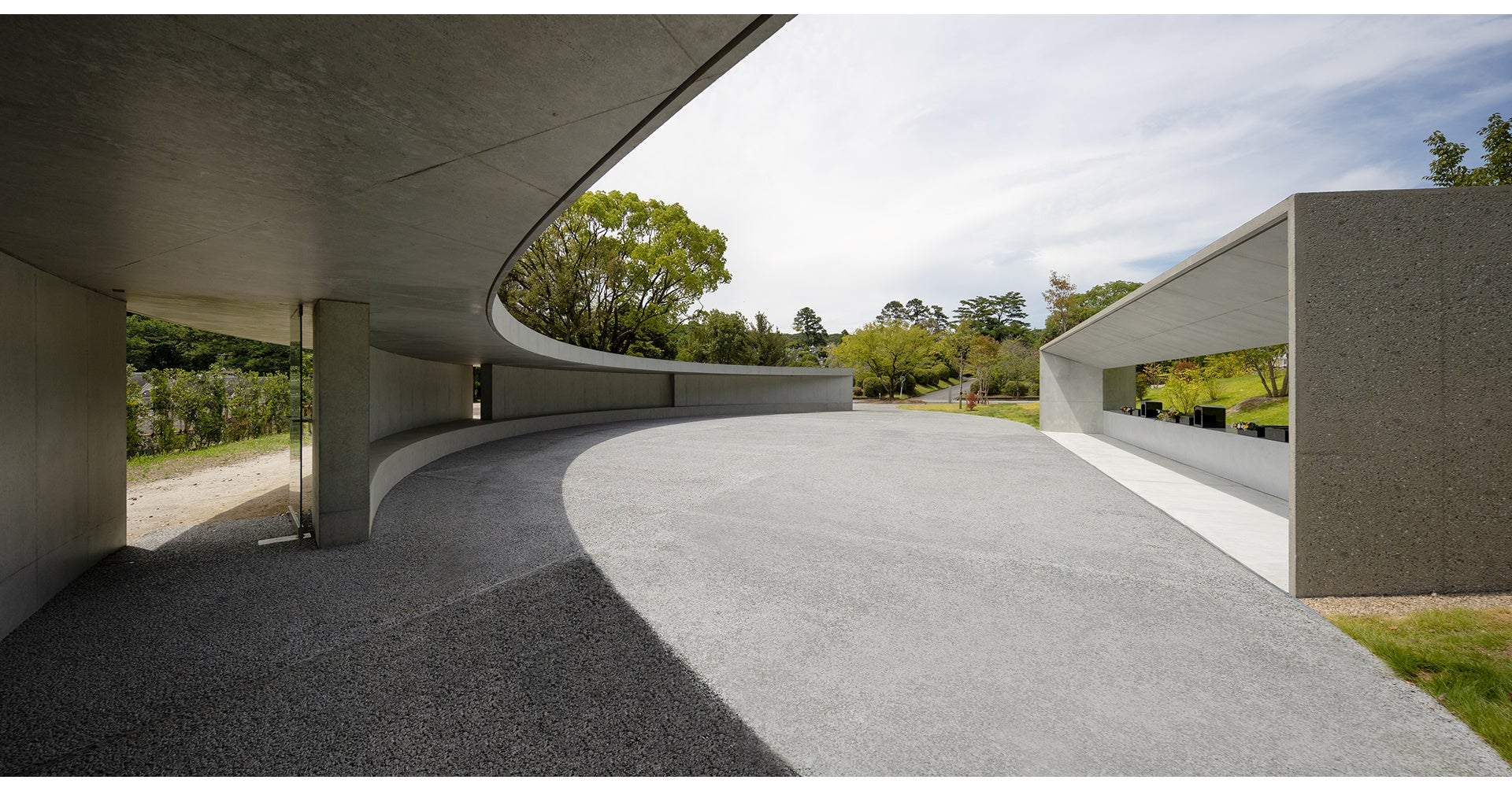 近年、霊園は建築デザインの力が入る領域となっており、これもそのひとつだが、特に近隣住宅との関係を調整しつつ、ランドスケープの修景を実践したことが、重要なポイントである。合葬式墓所の建設で生じる残土を有効に利用し、背後の荒れた山に補填することによって、埋蔵室を埋めながら、献花所からは自然の風景を拝む空間形式を導いた。屋上の緑化や円弧状の壁は、住宅地から見えないよう配慮したデザインである。なお、承継の必要がない合葬式墓所も、死生観が変化した現代的なプログラムだろう。