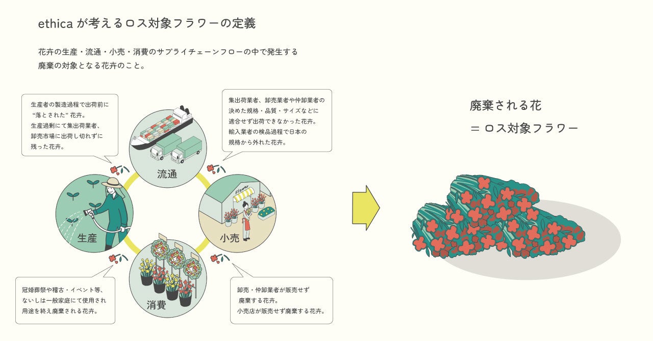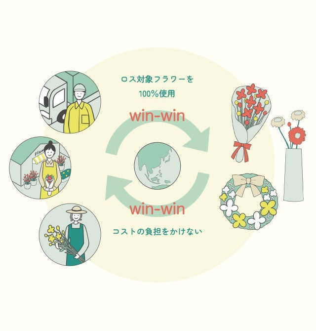 - 産地・市場・小売・イベントで発生したロス対象フラワーを100%使用