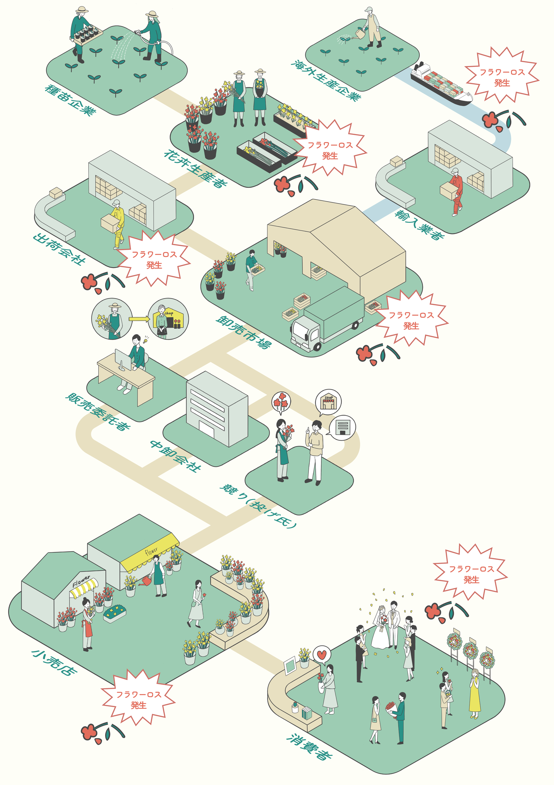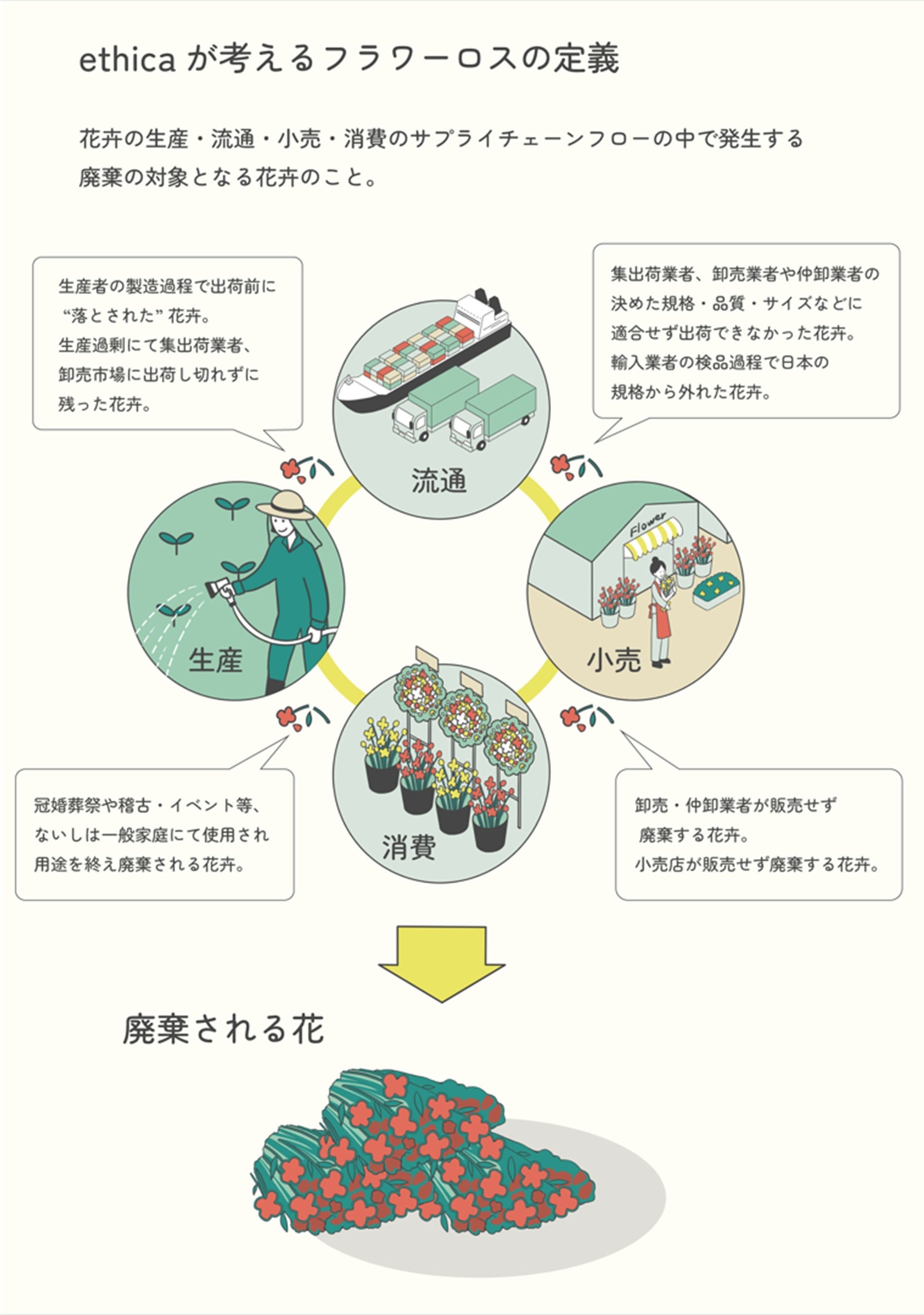 花きの生産・流通・小売・消費のサプライチェーンフローの中で発生する、廃棄の対象となる花きのこと。
