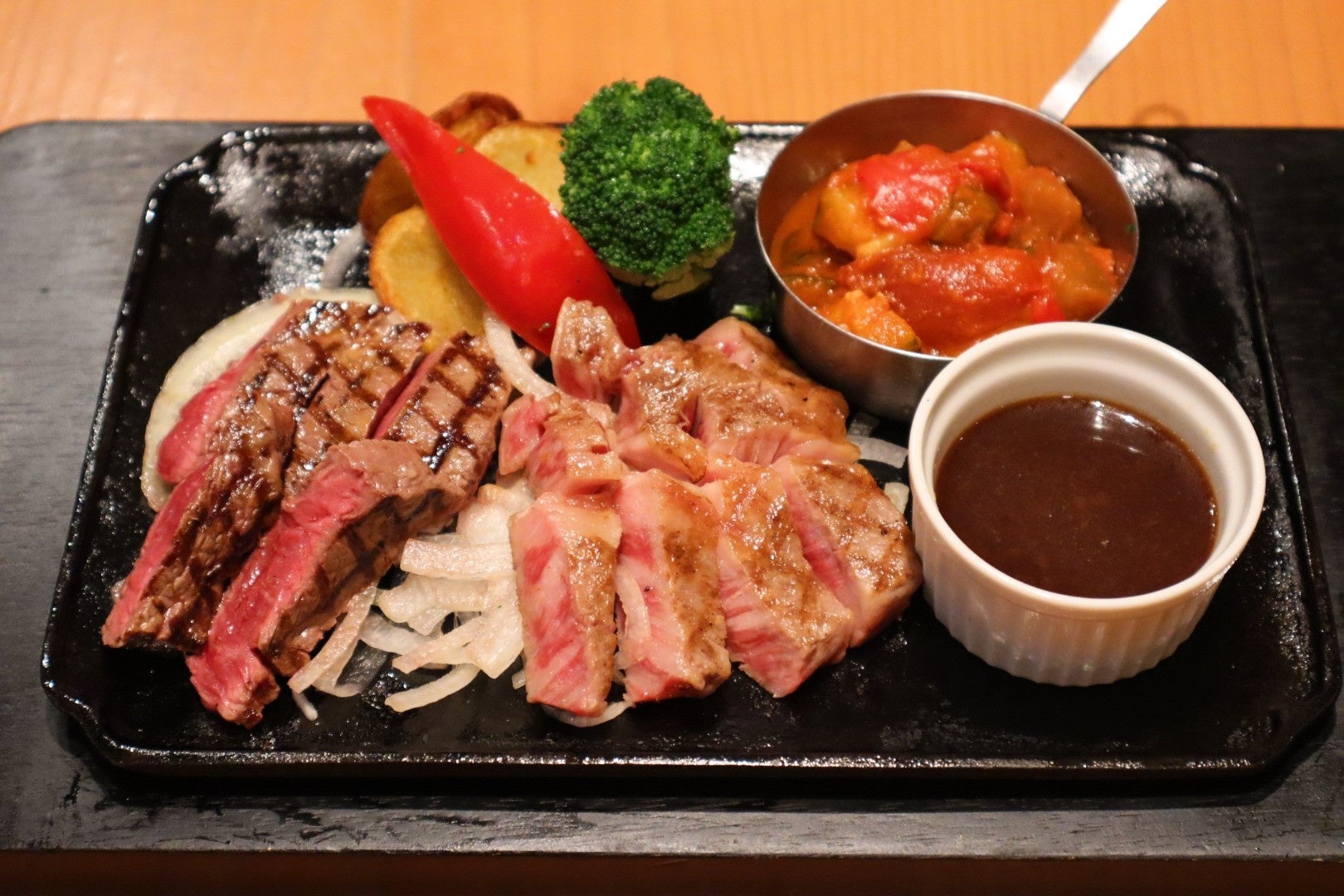 <スーパードライ あべのハルカス店:飛騨牛食べ比べ(赤身肉・リブロース)赤身70g・リブロース50g>