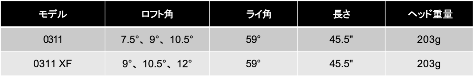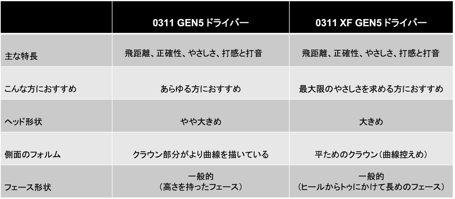 ■『GEN5』0311/0311XF ドライバー 比較表・スペック