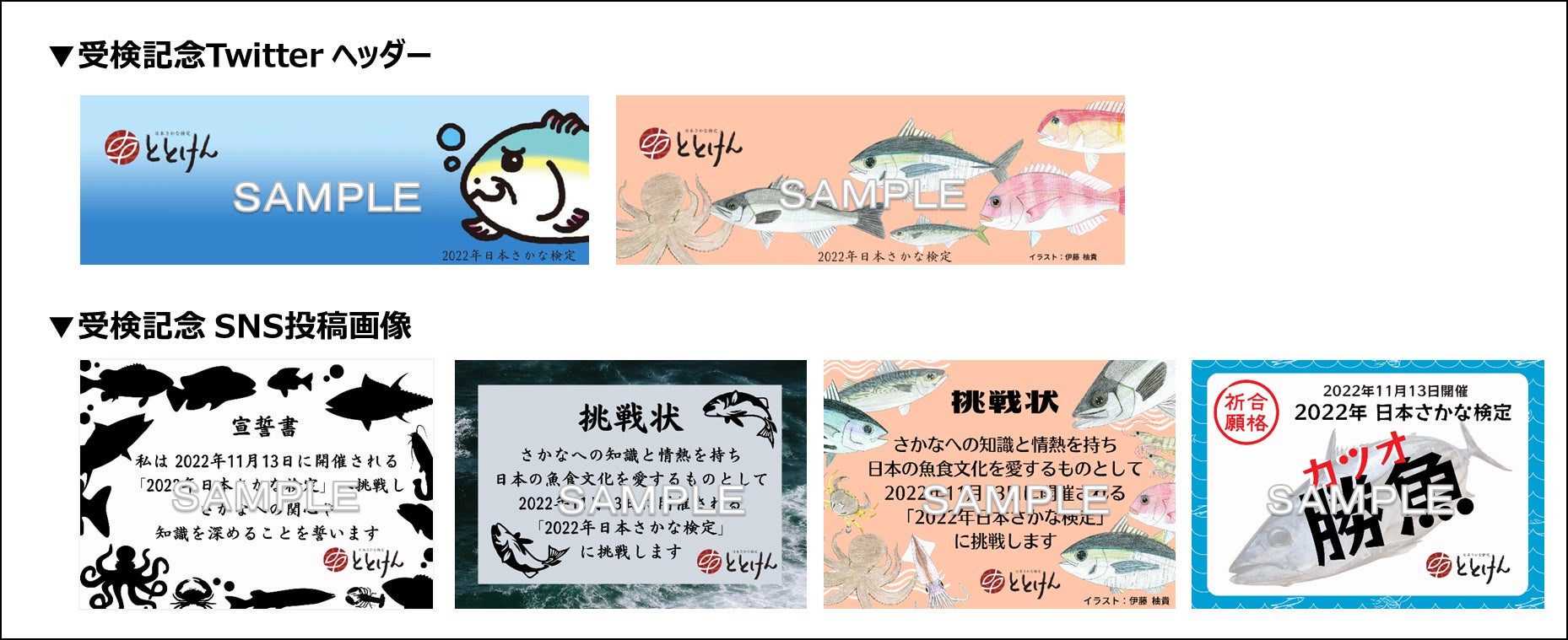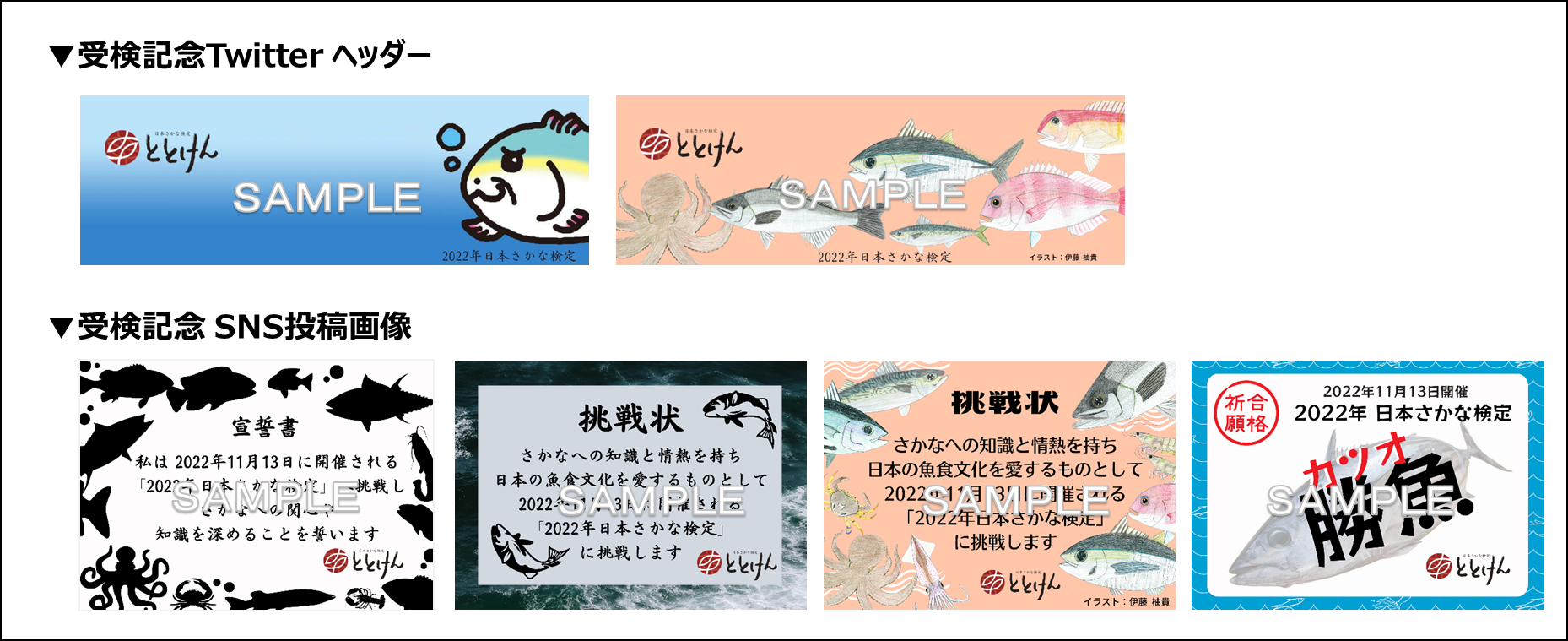 「2022年日本さかな検定」を受検する“証”として、検定申込者全員に「受検記念 Twitterヘッダー」「受検記念 SNS投稿画像」をプレゼントいたします。
