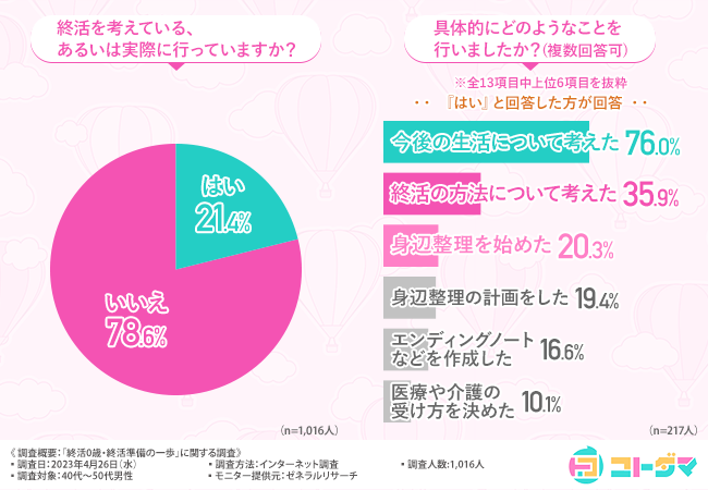 そこで今回、終活支援サービス「コトダマ」(https://kotodama-post.com/)を提供する株式会社CONNECTは、40代~50代男性を対象に、「終活0歳・終活準備の一歩」に関する調査を実施しました。