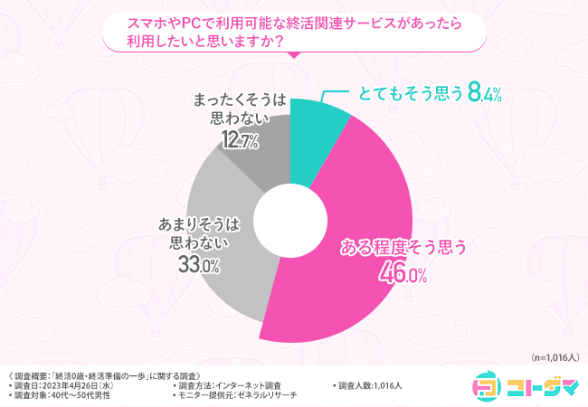 - 半数以上がスマホやPCで利用できる終活サービスを利用したいと回答!