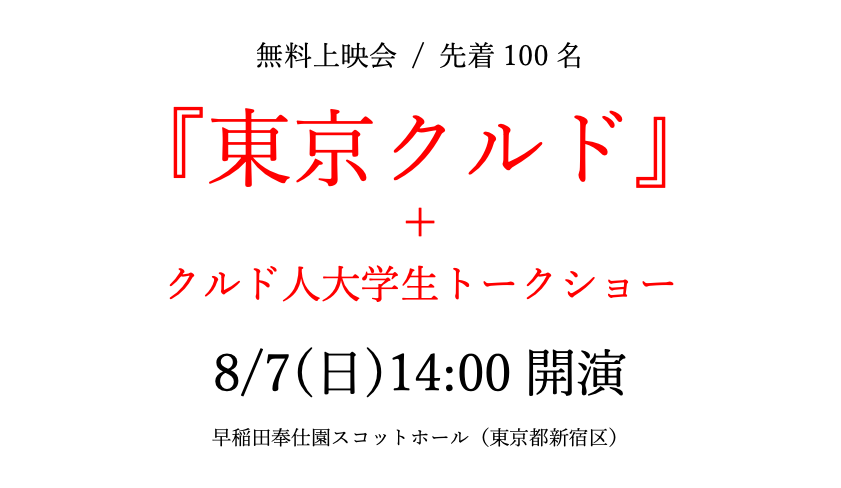 - 映画「東京クルド」上映会 +クルド人大学生トークショー について