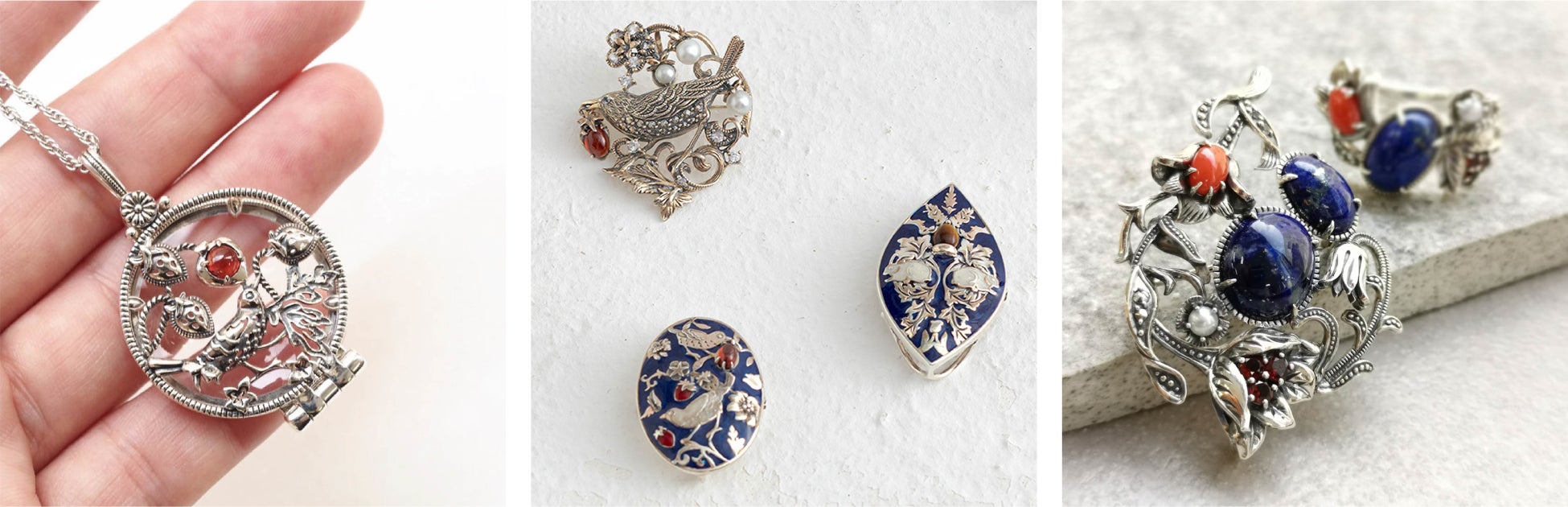 「モダンデザインの父」と呼ばれ、アーツ&クラフツ運動を推進し生活に芸術を取り入れたイギリスのデザイナー、ウィリアム・モリスの人気のデザインがジュエリーになりました。繊細なモチーフと天然石を組み合わせ、モリスの世界観を表現したこだわりのアイテムです。