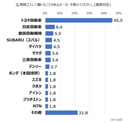 Q.期間工として働いたことがあるメーカー (複数回答)