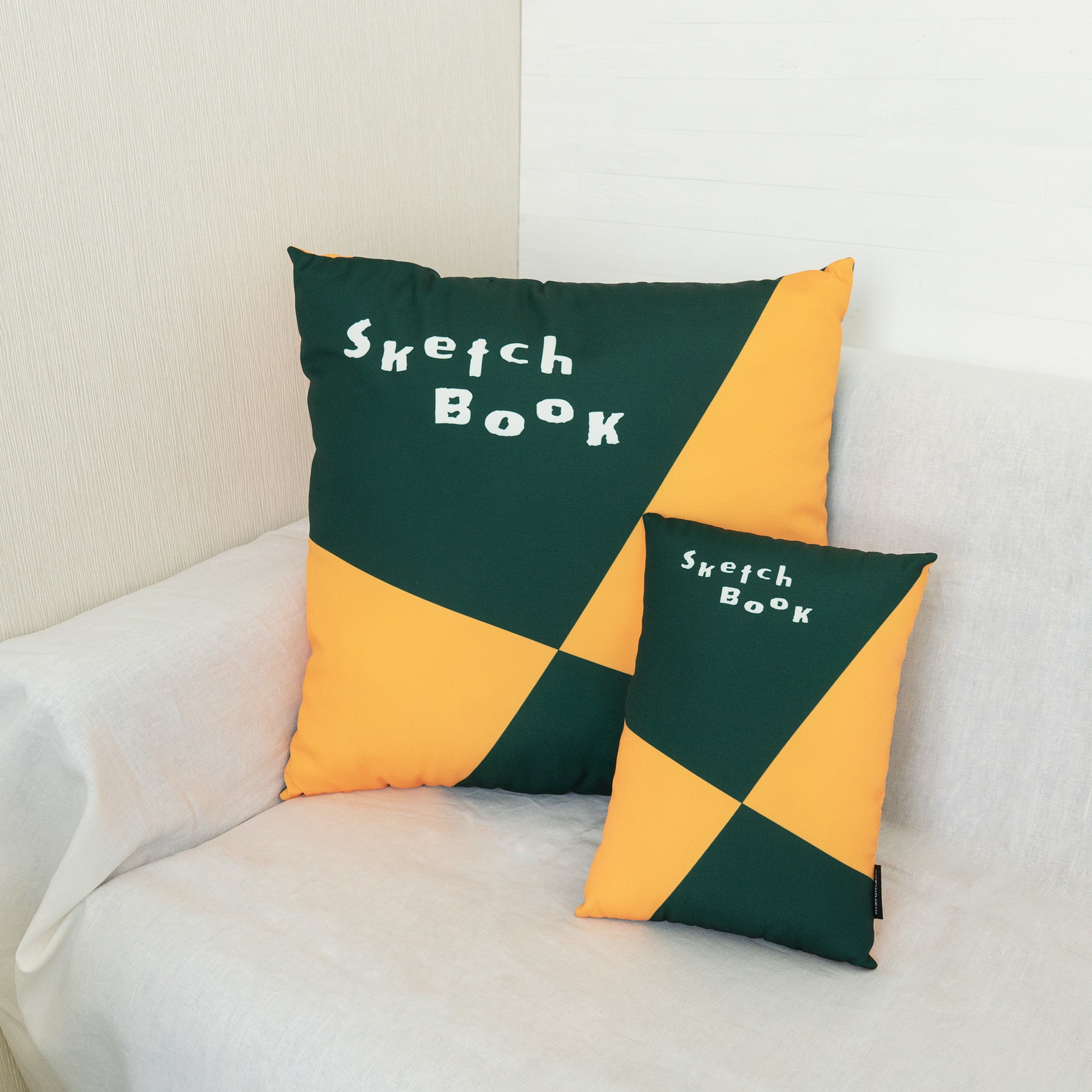 「図案スケッチブック」がクッションに大変身。丈夫な織生地に中綿がたっぷり入っていて、抱き心地抜群。インテリアとして飾ってもかわいい存在感のあるアイテムです。