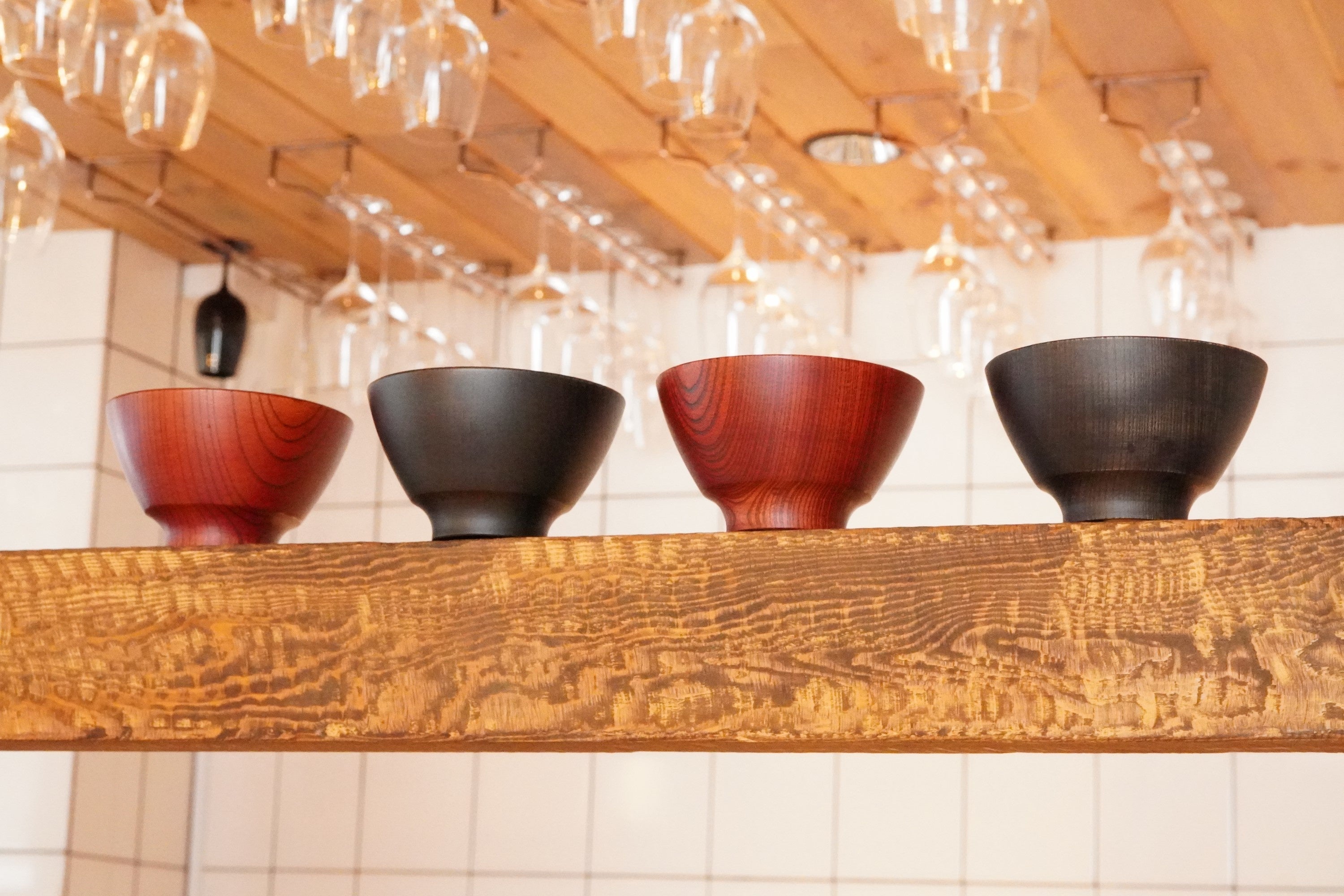 ろかぼ椀は、内側に山中の轆轤技術で筋引きがしてあります。
