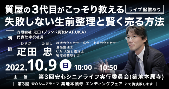 大好評につき7回目!!終活セミナー「質屋の3代目がこっそり教える、失敗しない生前整理と賢く売る方法!!」 【LIVE配信あり】