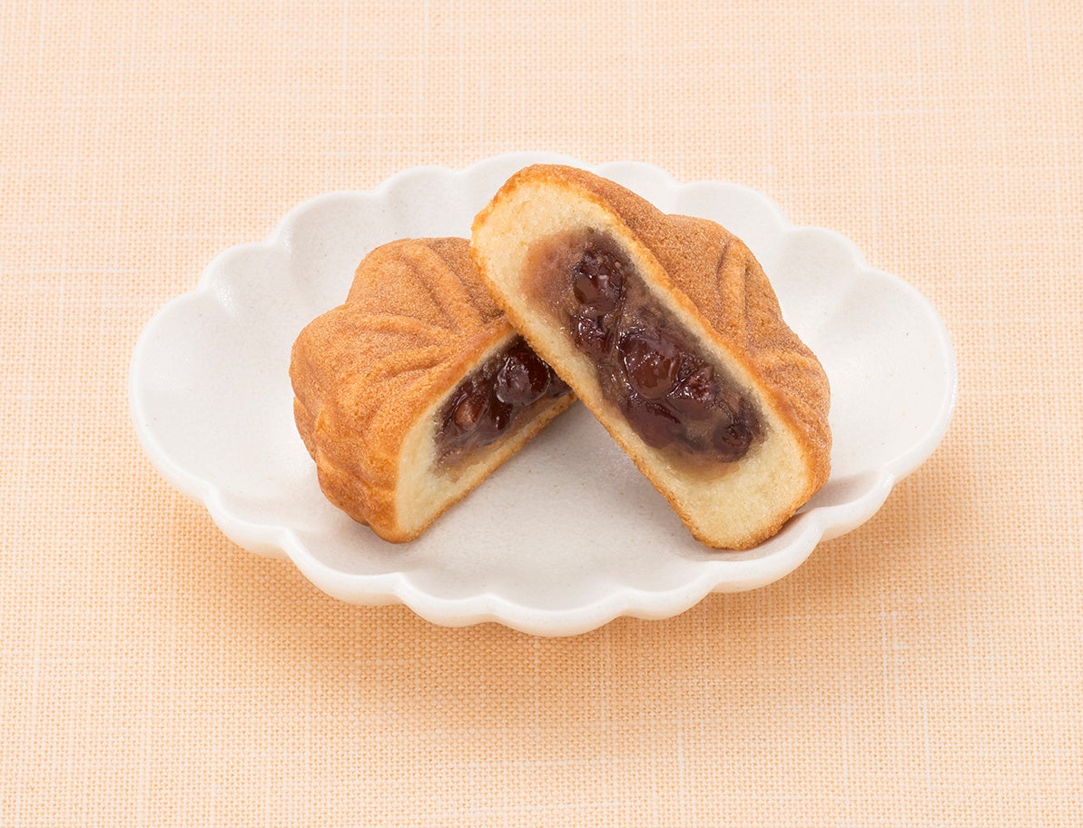 従来の「もみじ饅頭(こし餡)」と比較し、1個当たりの糖類を50%offにし、小さくすることで炭水化物全量も少なくなりました。生地は、豆乳や米粉を使ったカステラ風、餡は甘さを控え目にした粒餡です。お菓子のおいしさを堪能できる“ほどよいサイズ”で、優しい甘さのもみじ饅頭です。