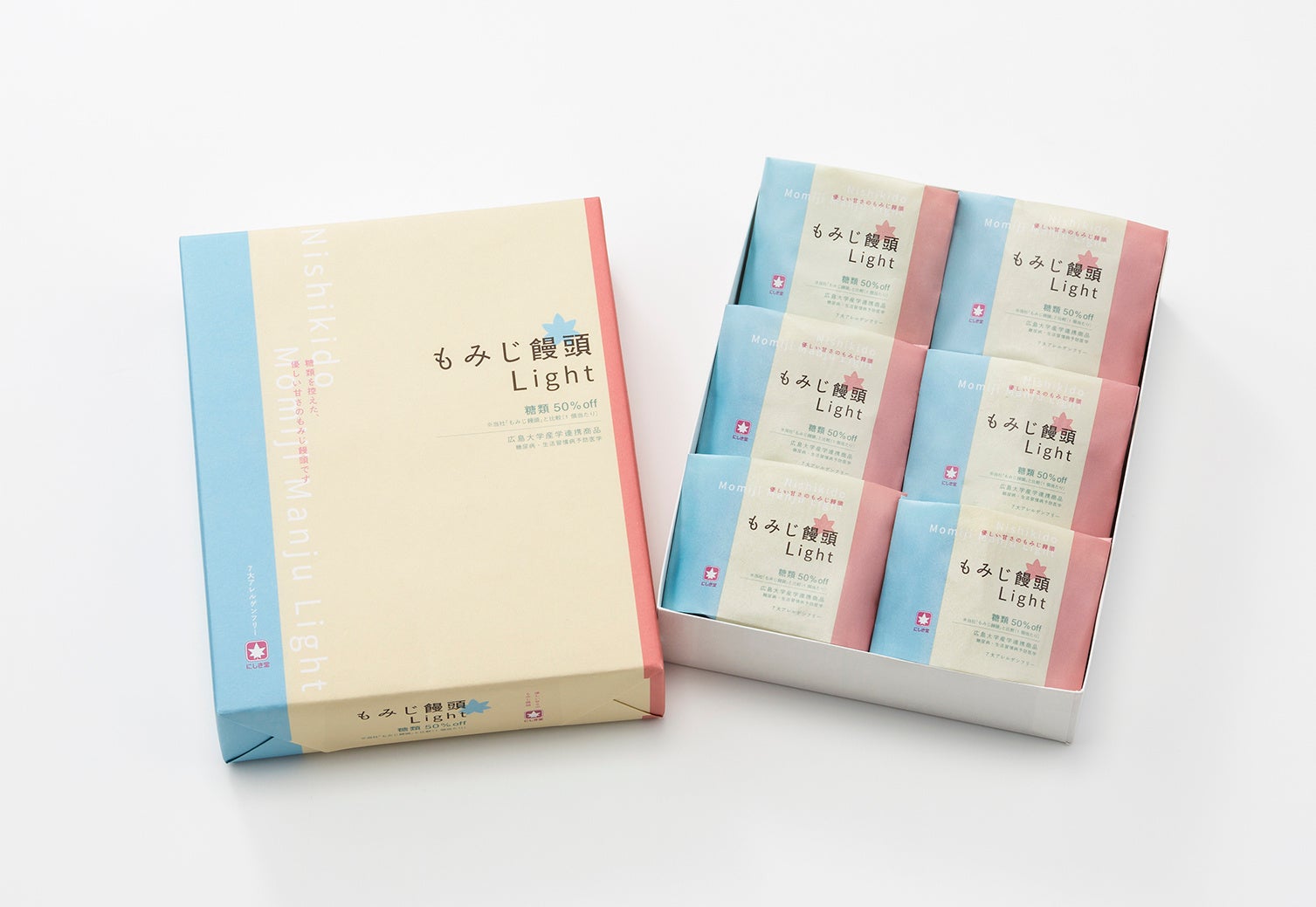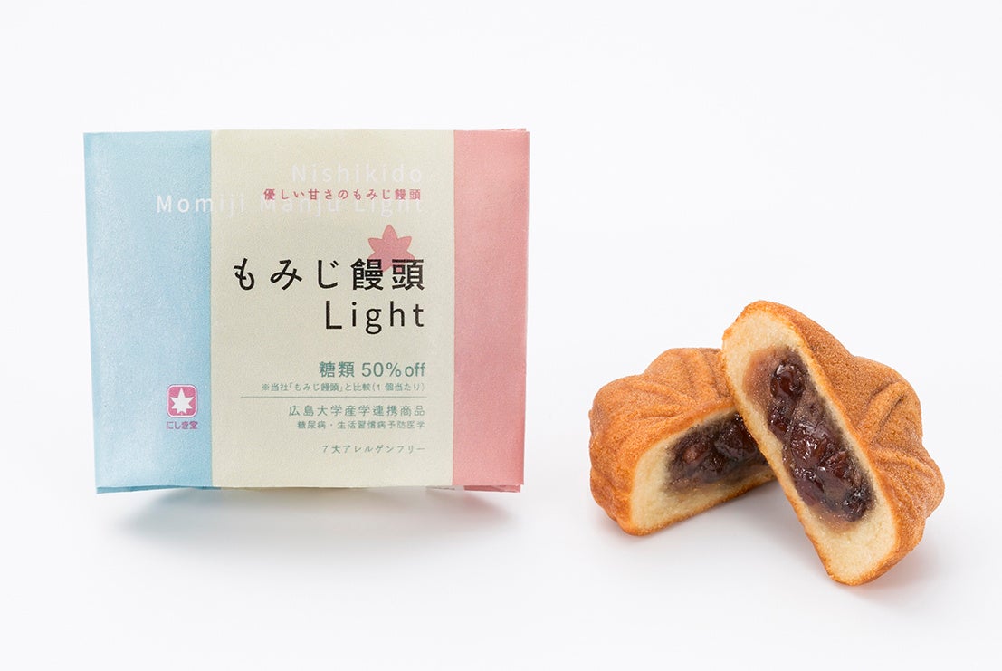 広島大学産学連携商品 糖尿病・生活習慣病予防医学 7大アレルゲンフリー 糖類50% off* 「もみじ饅頭Light (ライト)」新発売‼