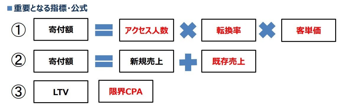 「寄付額拡大」「経費削減」「継続成長」