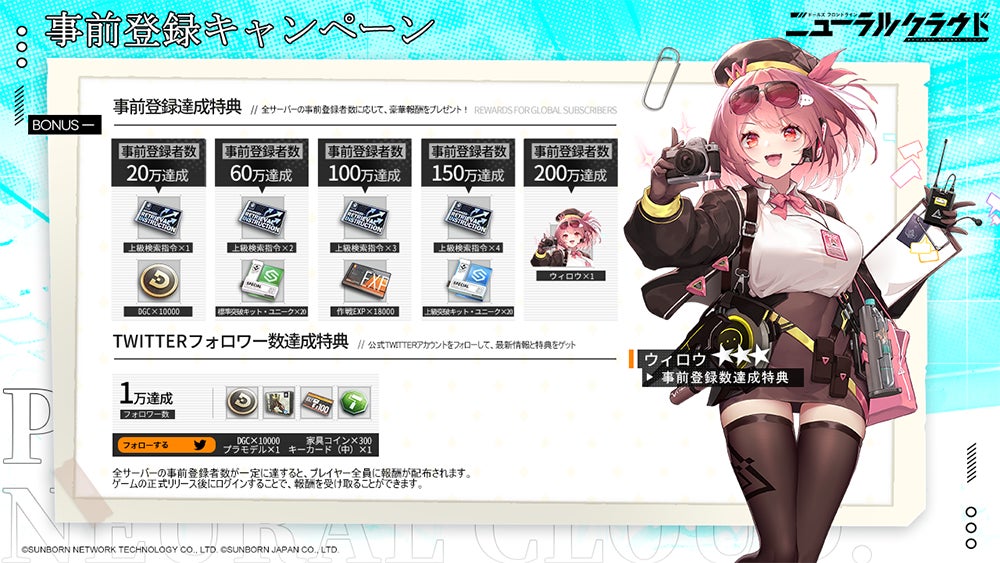 9月20日(火)、サンボーンジャパンは、シミュレーションゲーム『ドールズフロントライン』のスピンオフ作『ドールズフロントライン:ニューラルクラウド』の事前登録をApp Store & Google Playの両ストアにて開始したことをお知らせします。また9月20日より、これを記念したRTキャンペーンも開催しておりますので、皆さま奮ってご参加ください。