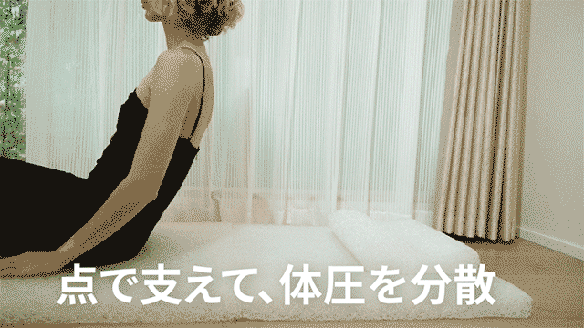 POE素材は「高級で高価な材料、複雑な工芸品」といわれ、非常に優れた復元性を持っています。高い反発力で身体を押し返してくれるので、無駄な力が入らず、自然な寝返りをうつことができます。一晩のうち、20回以上打つと言われる寝返り。寝返りを打つことにより一部の骨や筋肉に圧力負担が集中しづらく、首や肩の負担の軽減に繋がると言われています。両側は少し硬く、中央は柔らかい3つゾーンに分かれているので、横向きで寝ても頭が沈みにくいのもうれしいポイント。仰向けで寝る時は中央の柔らかい部分で、横寝の場合は両サイドの固い部分を利用するなど、好みの睡眠スタイルに対応してくれます。