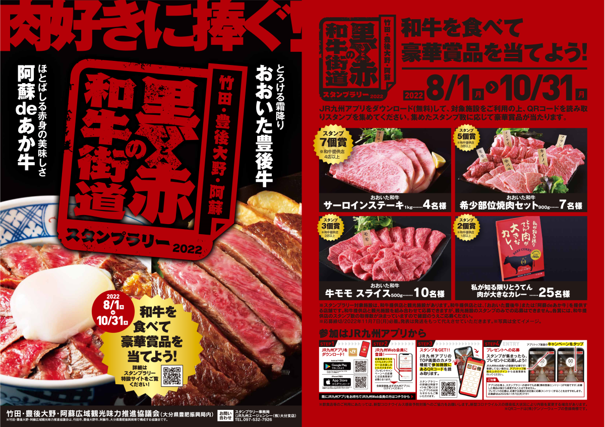 肉好きに捧ぐ!和牛を食べて豪華賞品を当てよう!! 竹田・豊後大野・阿蘇 黒と赤の和牛街道スタンプラリー2022開催