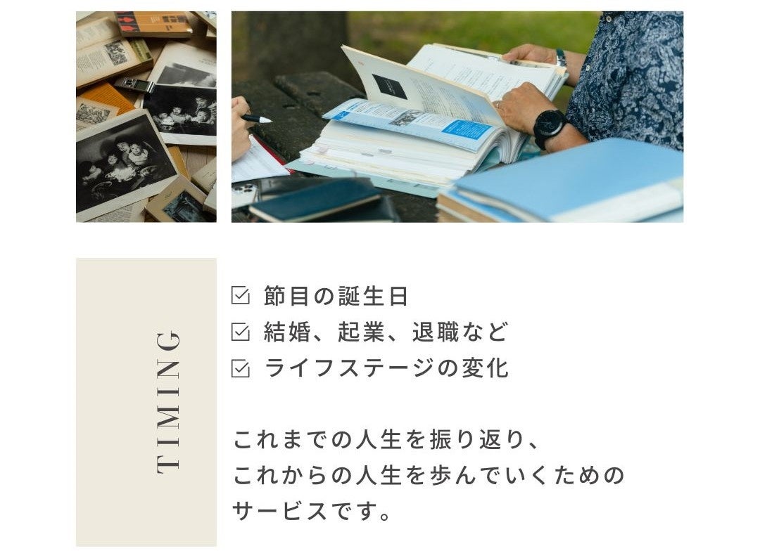 - サービス特徴 ーライフステージの節目に人生を振り返り、これからの人生を歩んでいくためにー