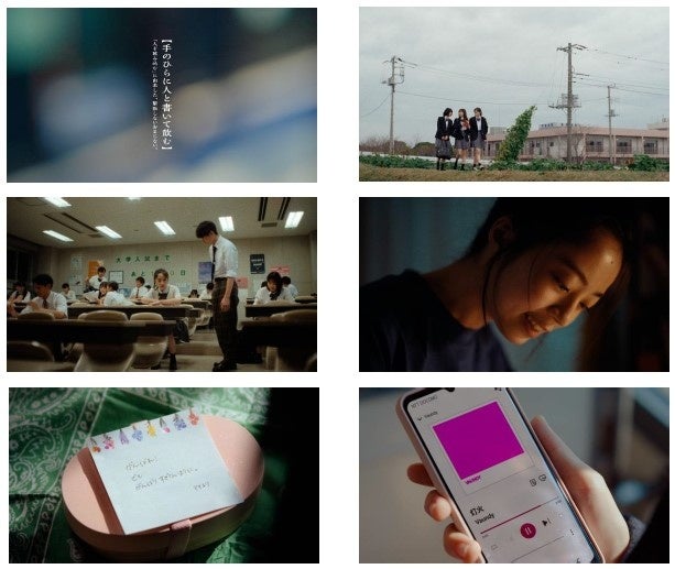 バスの中でいよいよイヤホンをつけVaundyさんの「灯火」を聴くシーンでは、友人と歌いながら勉強に励んだ日や、模試の判定が思うような結果にならず落ち込んだ日、それでも周囲の人に励まされながら勉強に向き合ってきた日々が次々と回想され、自分の手のひらにあるスマホの中にはいつも応援してくれた家族や仲間がいたことに気づきます。「私の手のひらにはいつだって人がいた。大好きな人が応援してくれた。私を信じる。」というナレーションとともに、自信をもって受験会場へ向かう牧野さんの横顔で幕を閉じます。