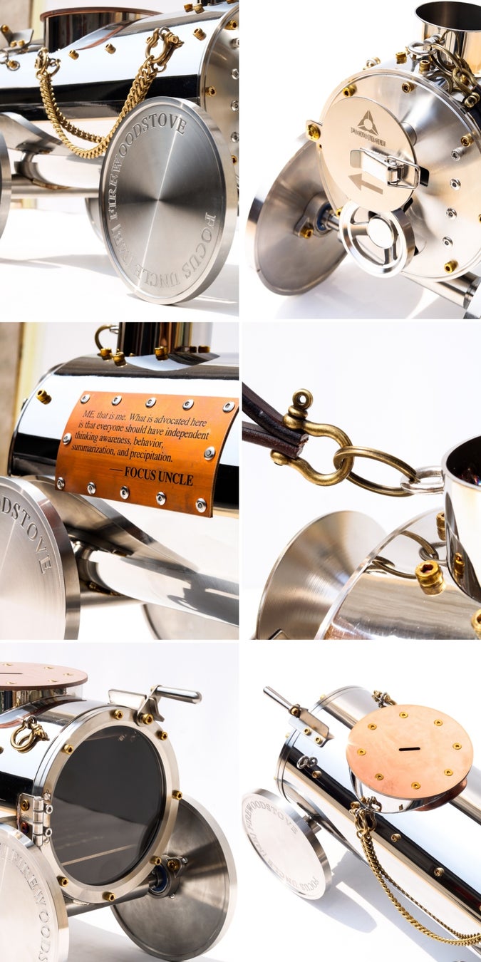 1、蒸気機関車風のレトロなデザイン:ヴィンテージ感あふれるデザインが、キャンプサイトやリビングルームに独特な雰囲気をもたらします。「ME」はただの薪ストーブではなく、インテリアの中心としても機能します。