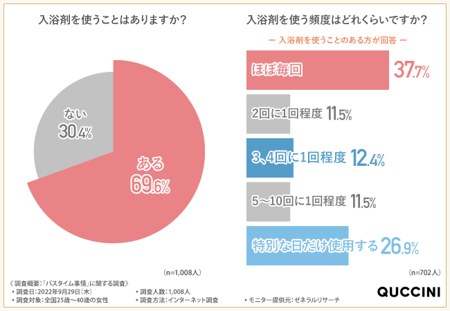 そこで、「入浴剤を使うことはありますか?」と質問したところ、7割近くの方が『ある(69.6%)』と回答しました。