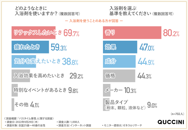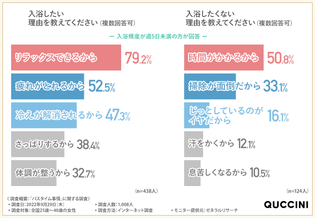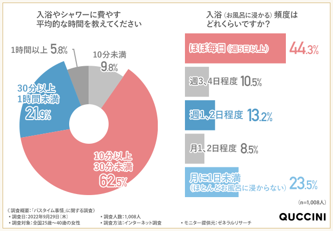 そこで今回、入浴剤『sus4(サスフォー)』(https://quccini.shop/shop/sus4atb-000-210g)を販売する有限会社ドリーム・クエストは、全国25歳~40歳の女性を対象に「バスタイム事情」に関する調査を実施しました。