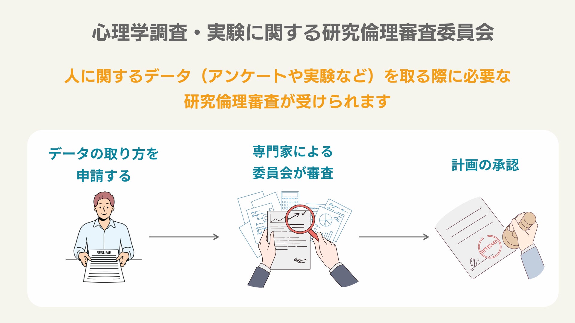 調査に参加する人の心身の安全性は確保されているか、個人情報の保護はできているか、などを専門家がチェックするプロセスを「研究倫理審査」と呼びます。