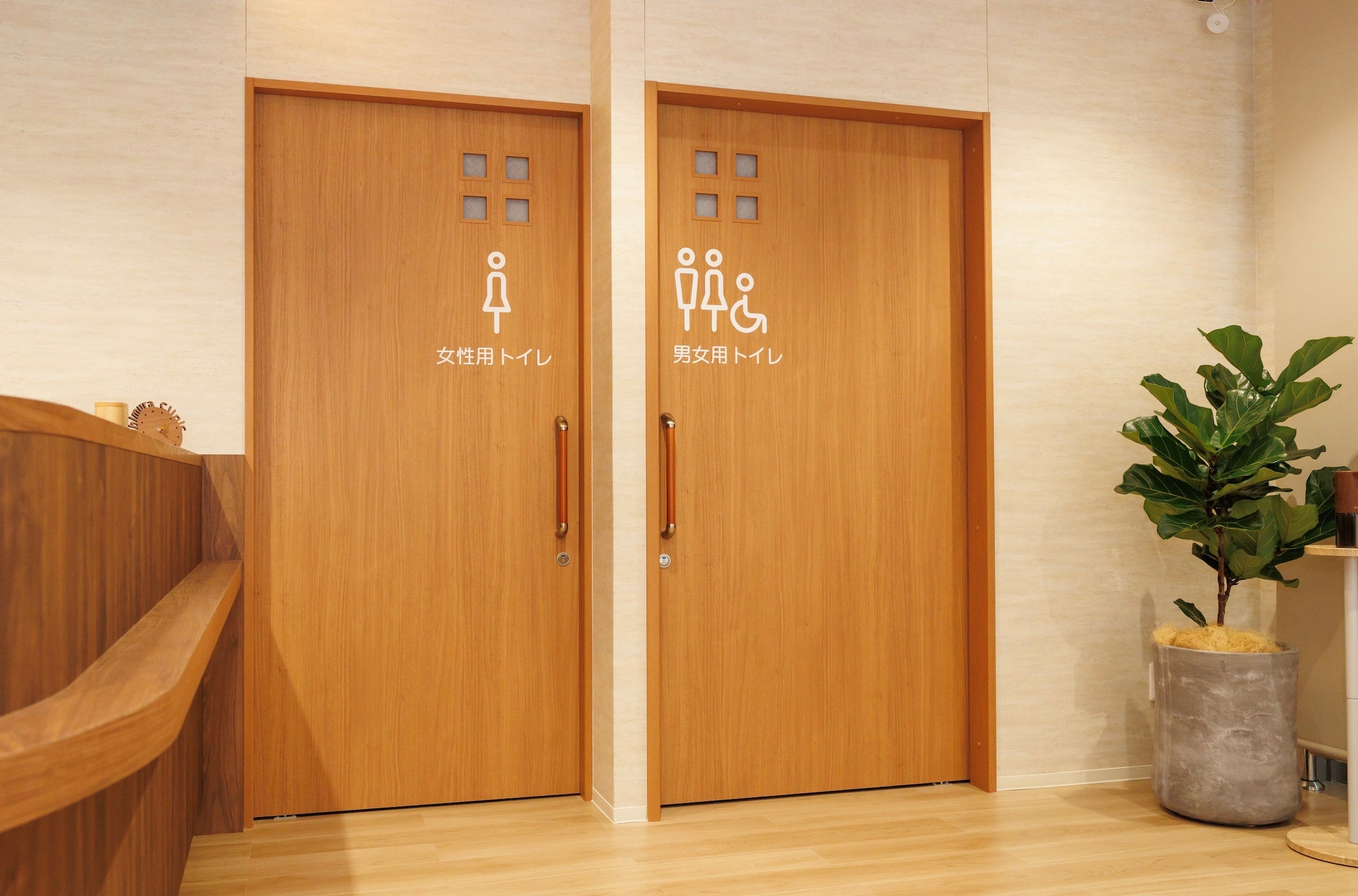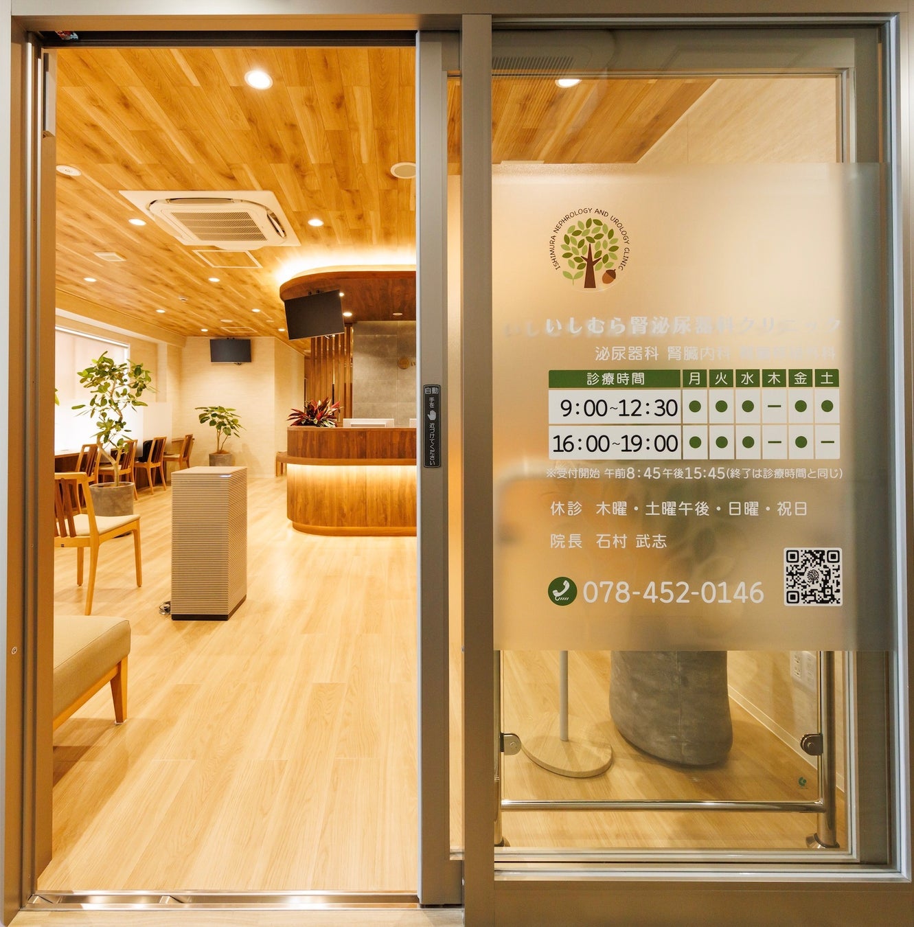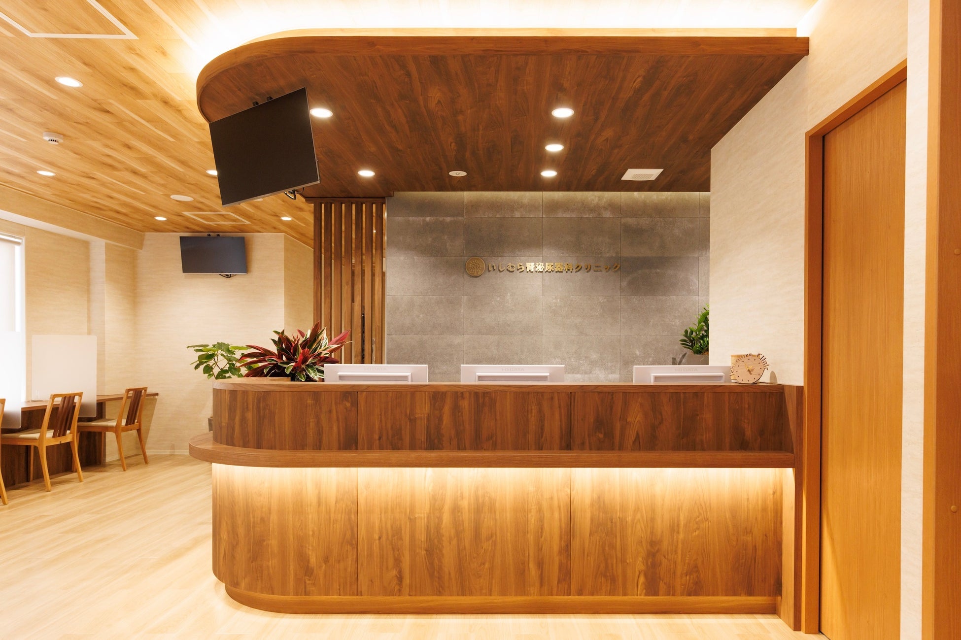 2022年10月に神戸市東灘区で開院した “いしむら腎泌尿器科クリニック” 従来「泌尿器科は恥ずかしいから」と、排尿トラブルの相談はためらわれてきました。しかし近年、さまざまなメディアやSNSで排尿・腎臓疾患が取り上げられるようになり、「自分だけではないんだ」ということに皆さま気付いています。当院では、あらゆる患者さんがリラックスして抵抗なく受診できるよう、明るく温かみのある雰囲気にこだわりました。日の光が差し込む木の温もりを基調とした待合室には、プライバシーを守るカウンター待合もあります。もちろんバリアフリーです。このたび、開院当初からこだわっていた緑あふれる室内装飾をリフレッシュして、より一層受診しやすい雰囲気となりました。
