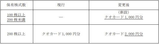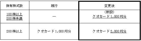 この度、株主様の当社株式の保有状況等を総合的に勘案し、当社株式への投資魅力を一層向上させるため、現行の株主優待制度を変更(拡充)させていただくことといたしました。