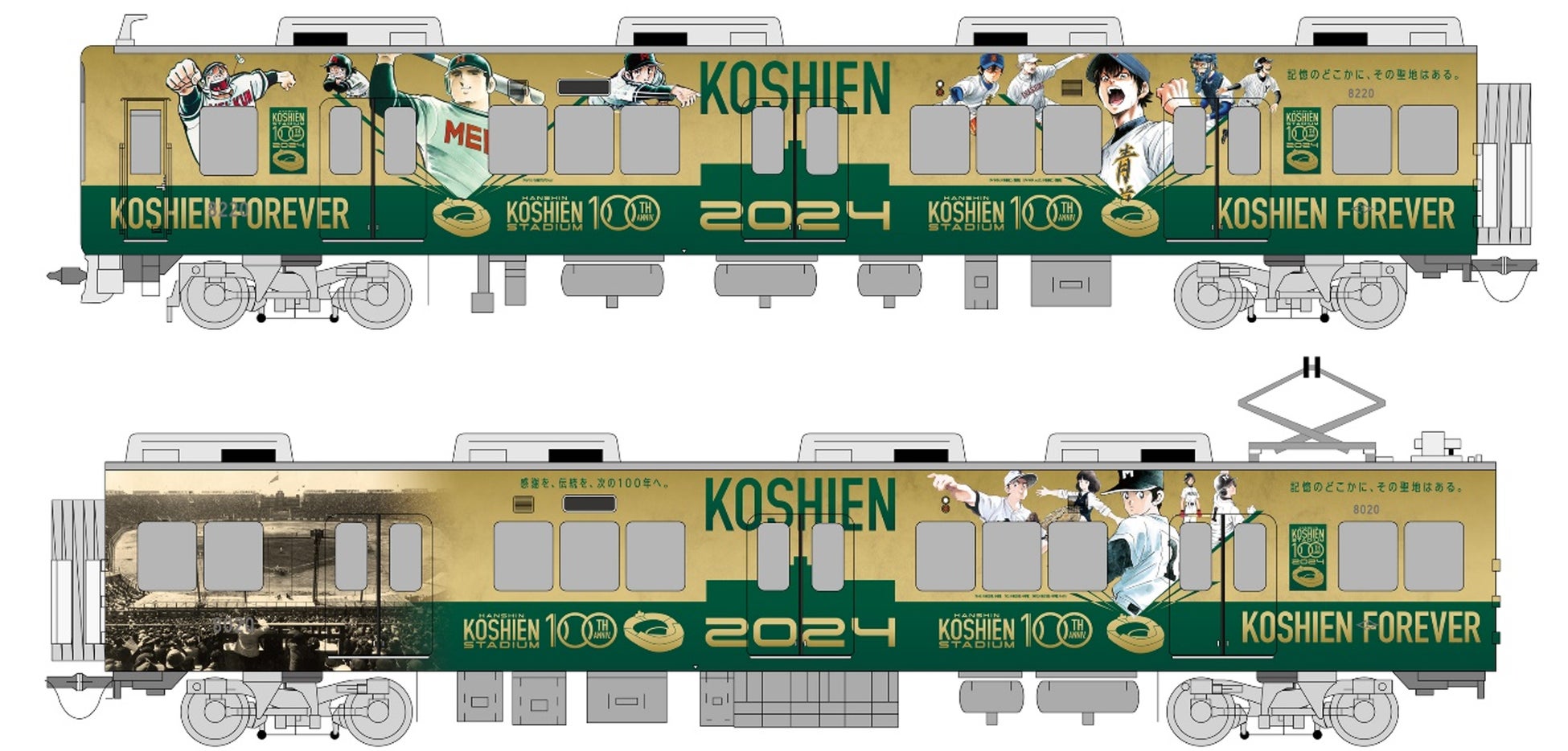 また、キービジュアルには、100周年以降も伝統を受け継ぎながら未来へ向けて成長する決意を込めた「KOSHIEN FOREVER」のワードに、各年代で愛された作品の主人公たちを通じて、皆様の思い出の中にある甲子園を呼び起こしていただきたいという思いから「記憶のどこかに、その聖地はある。」のフレーズを付しています。