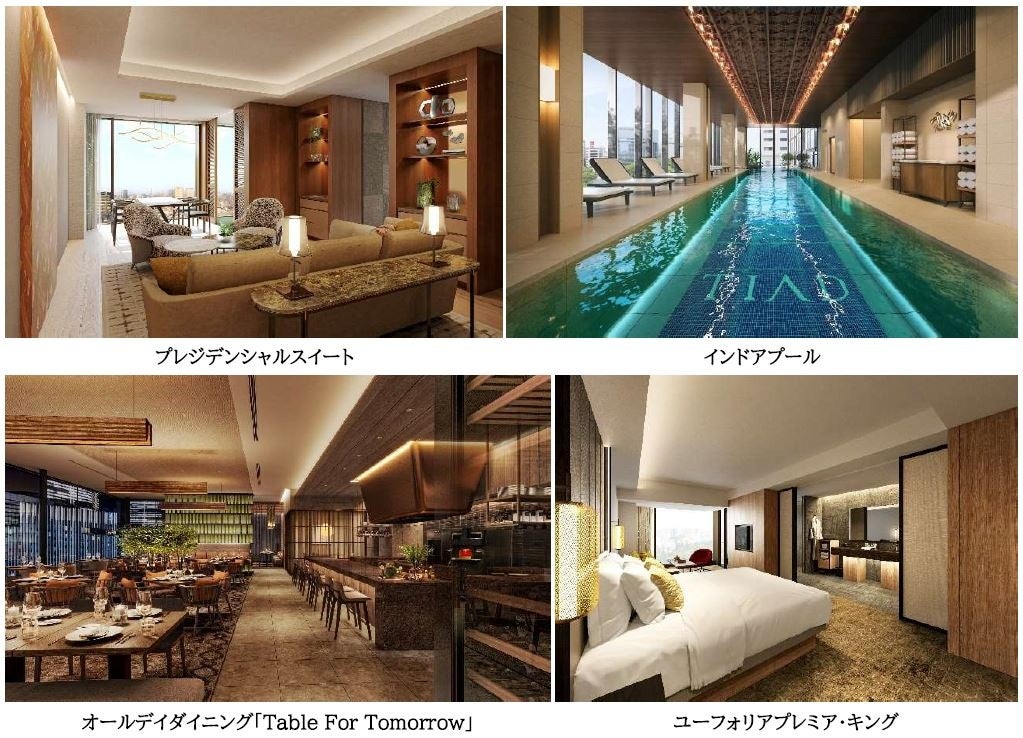 建物は、緑化したテラスを入れ子状に配し、眼下に広がる久屋大通公園の緑をホテルに引き込むデザインで、名古屋の都心部にありながら自然を存分に感じていただける造りが特徴です。ホテル内は、客室内やバンケットの家具など「モノ」にこだわるだけではなく、名古屋エリア初となるバトラーサービス、バレーパーキングサービスなど「コト」にまでこだわったラグジュアリーなおもてなしを提供します。