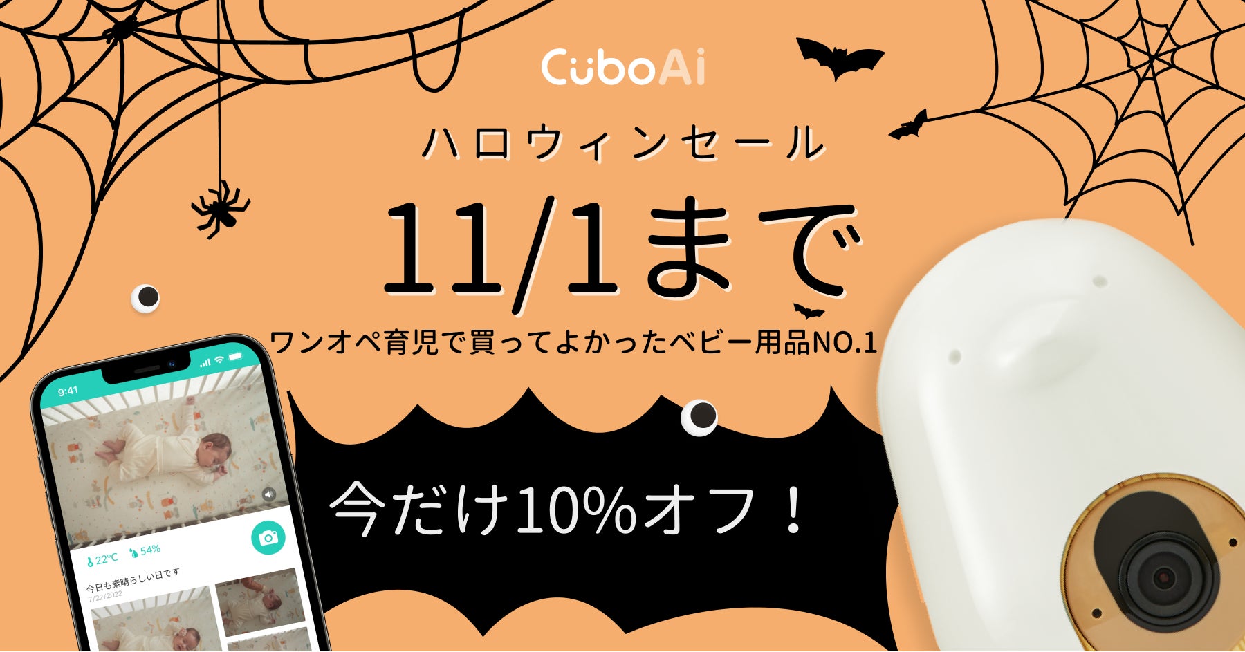Yun Yun AI Baby Camera Co., Ltd (本社:台湾台北市、代表:TSENG, CHIH HSIN 曾志新(ゼン・ヅーシン)) は、2022年10月26日(水) 0:00から2022年11月1日(火)23:59までの7日間にわたり、『CuboAi スマートベビーモニター』、『CuboAi 赤ちゃんねんね見守りセット』を10%OFFで販売するハロウィンセールを開催します。