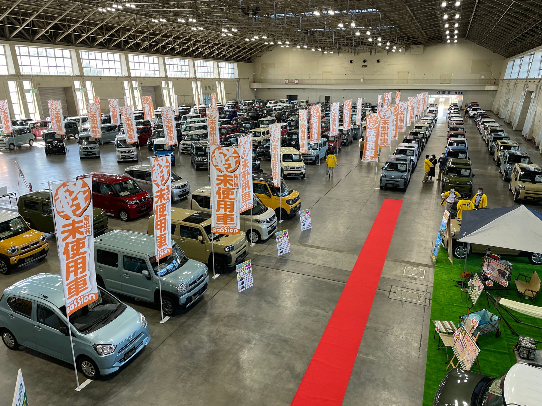 「軽未使用車展示即売会」とは、最新の軽自動車をオールメーカー展示し、メーカーの垣根を越えて、見比べながらお車選びをしていただけるイベントです。