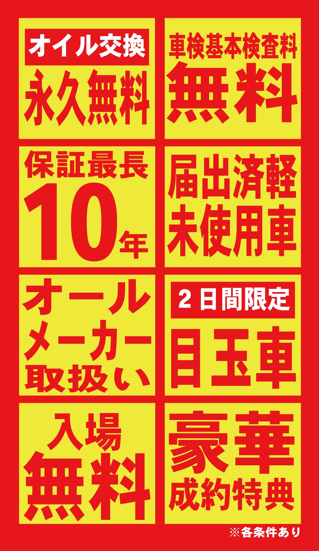 イベント限定のお得な目玉車や特典の詳細ついては、イベント特設ページをご覧ください。