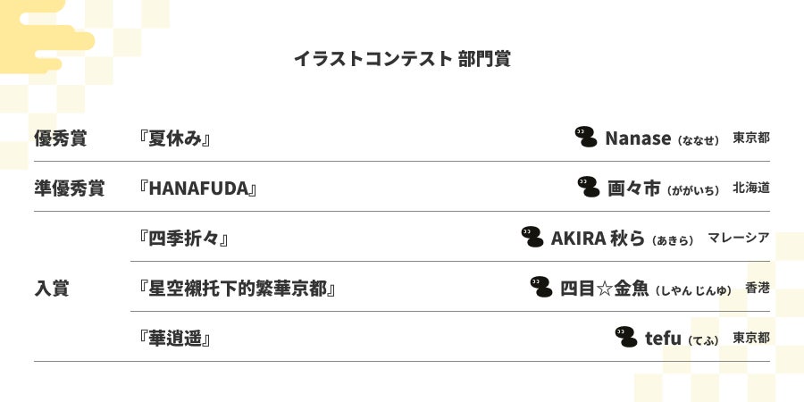『京まふ』の主旨である“「京都から世界へ」羽ばたくクリエイターを輩出する”という想いに強く共感し、この度はスポンサーとして参画いたしました。受賞クリエイターの皆様がこれからも自分らしい作品を楽しみながら思いっきり描き、それが日本や世界の人々の心を豊かにし文化を築く活躍の後押しとなればと考えています。