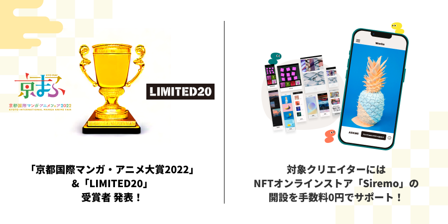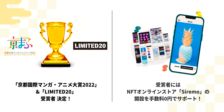「京都国際マンガ・アニメ大賞2022」と「LIMITED20」の受賞者 発表! クリエイターには『NFTオンラインストアSiremo』の開設や販売手数料を無料でサポート