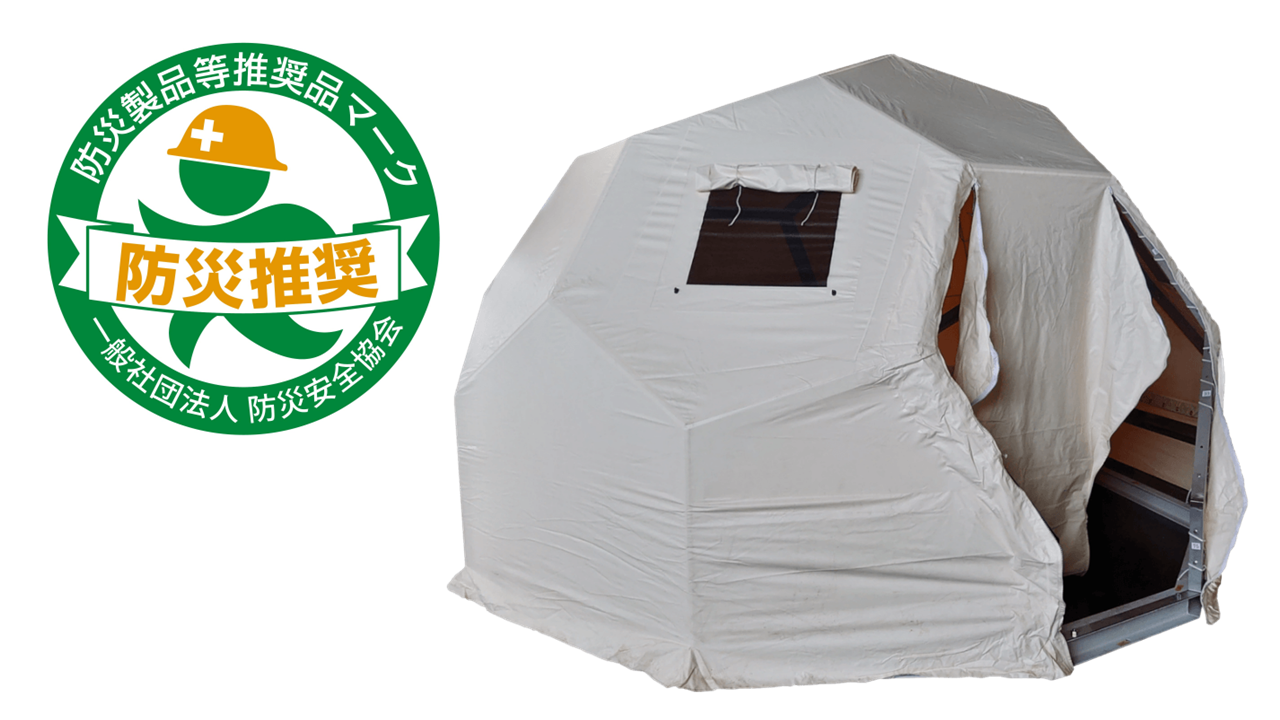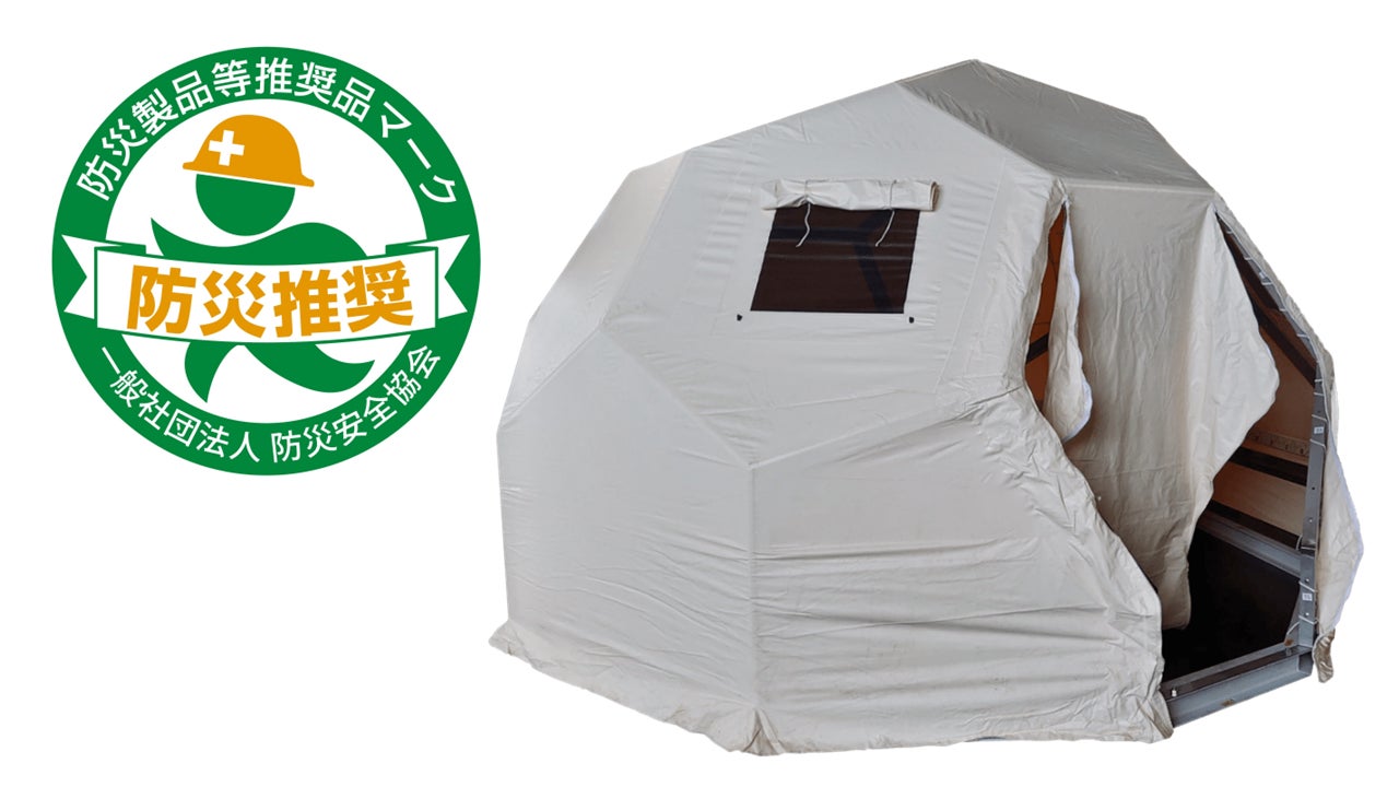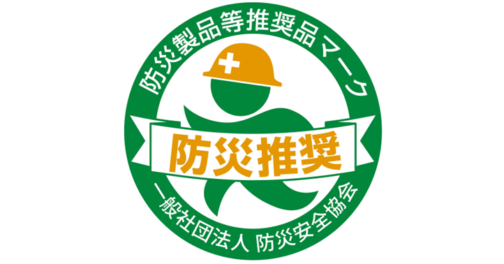 一般社団法人防災安全協会が行う防災製品に関する認証制度で、防災分野の専門的な有識者で構成する防災製品等推奨審査会により行われる審議・審査の結果、合格した防災製品が推奨品として認証されます。また、認証された製品には、「防災製品等推奨品マーク」の使用が許諾されます。当社が開発・販売する「かんたん組立式防災シェルターERRY(エリー)」に対し、推奨品マークの使用が許諾されました。