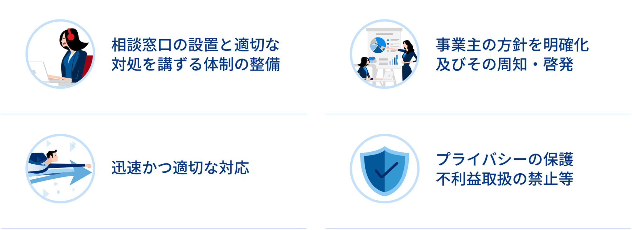 【パワハラ防止法改正によって事業者に義務付けられた4つの項目】