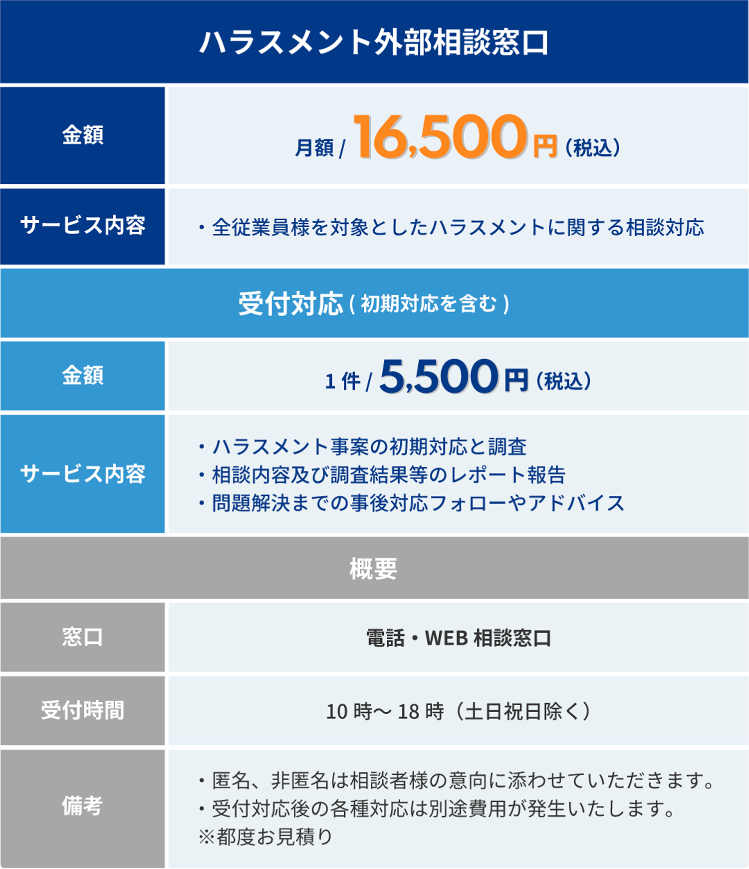 JSTのハラスメント外部相談窓口サービスは社内のハラスメントだけでなく、取引先やカスタマーなど外部からのハラスメントや公益通報など企業コンプライアンスにも対応した相談窓口で、ハラスメント対応や法令を熟知した経験豊富な女性警察官OGが客観的・中立的な立場から相談を受ける非常にユニークなサービスです。
