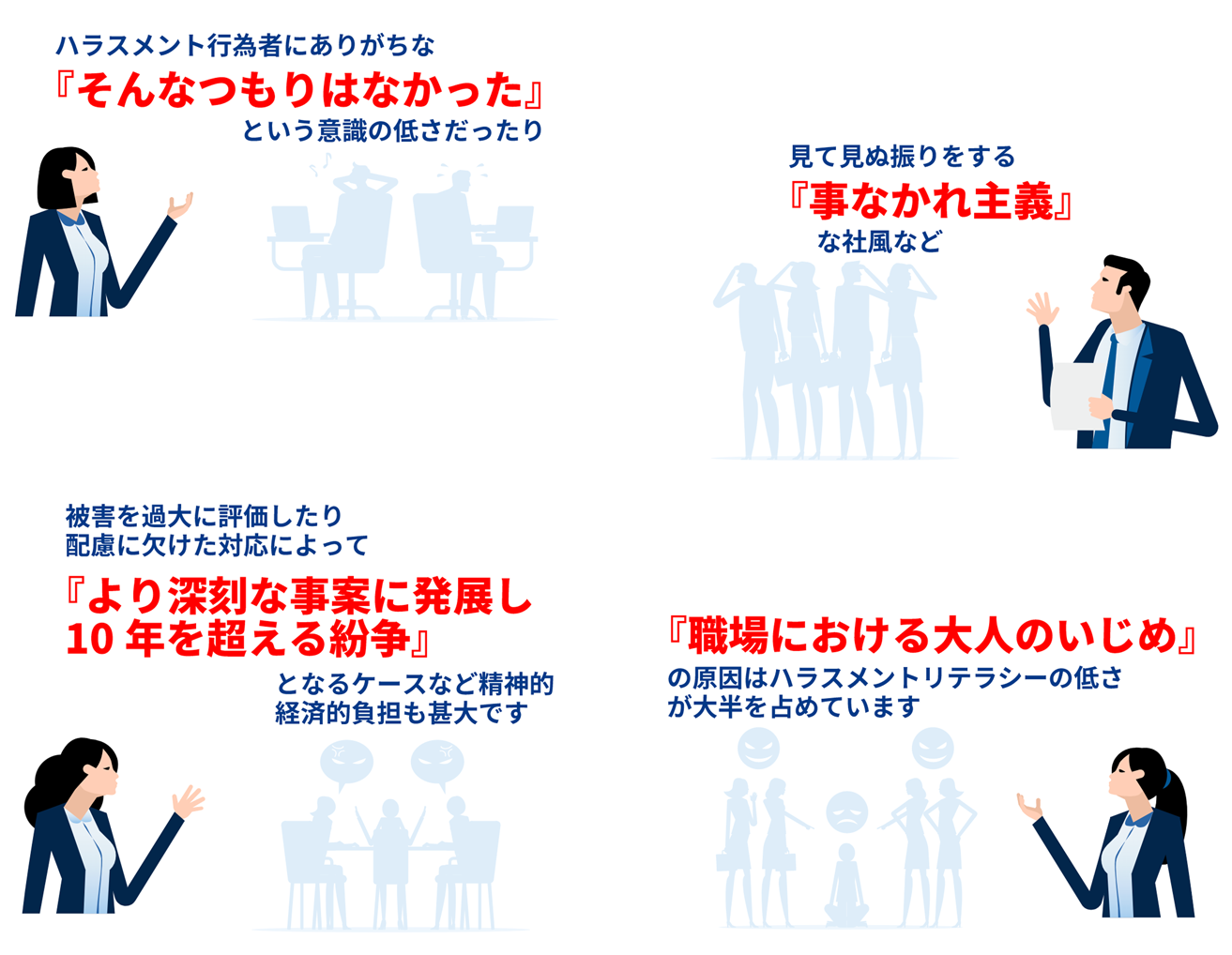 パワハラ防止法施行後、社内に相談窓口を設置している企業が多数を占めていますが体裁上だけの設置で機能不全なケースが多く、様々なリスクが見受けられています。