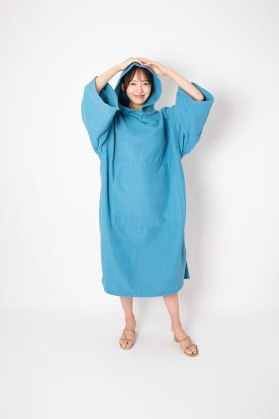 トトノウカーのロゴがプリントされたポンチョです。 野外のサウナでは欠かせないアイテム。 外気浴の心地よさを倍増させてくれます。FREEサイズで寸法(着丈*幅)は115 cm x 146 cm