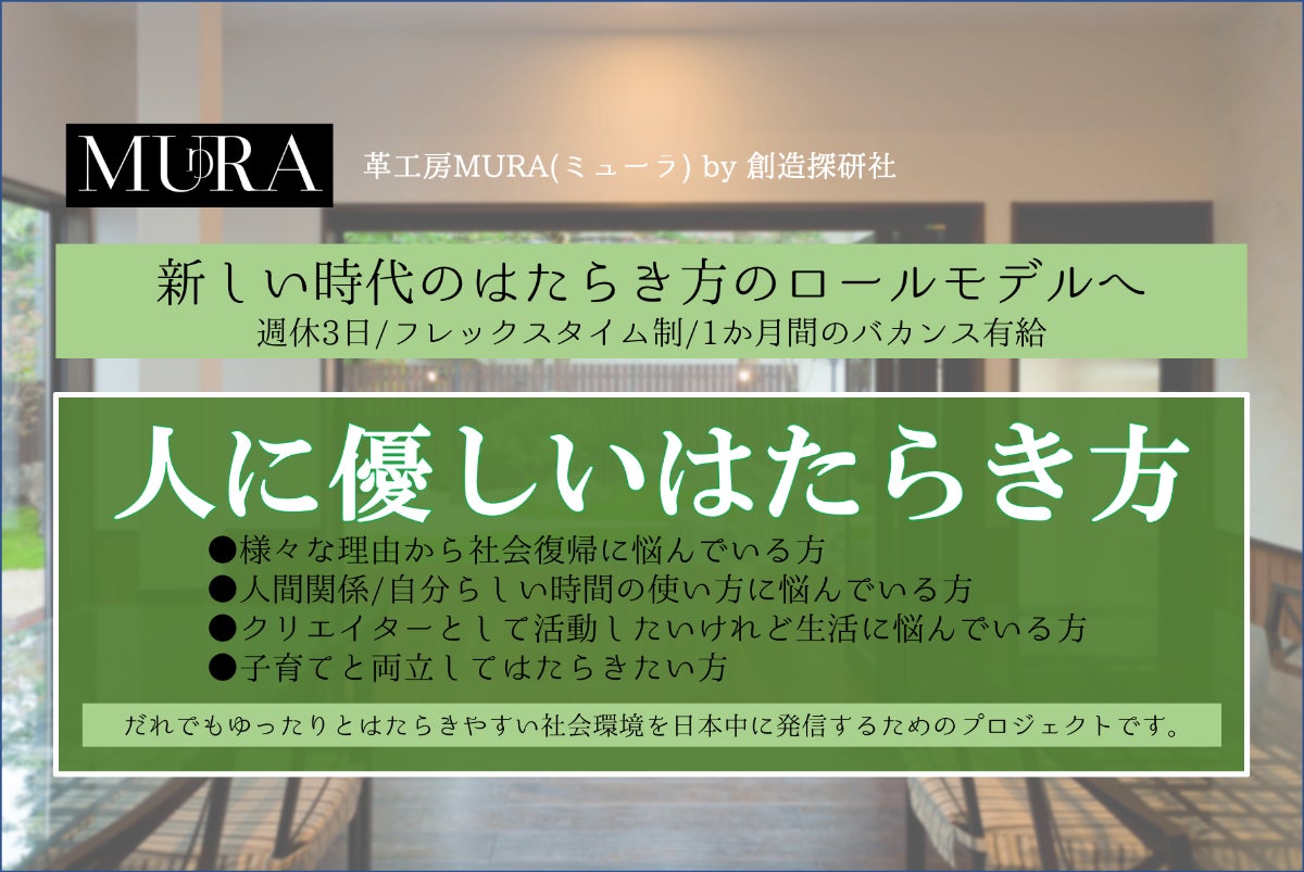 【クラウドファンディング】社会復帰・子育て世代・将来独立したいクリエイターのための『人に優しいはたらき方』を実践・発信・更なる事業拡大を目指す足がかりとして、革工房の雇用拡大を応援してください。