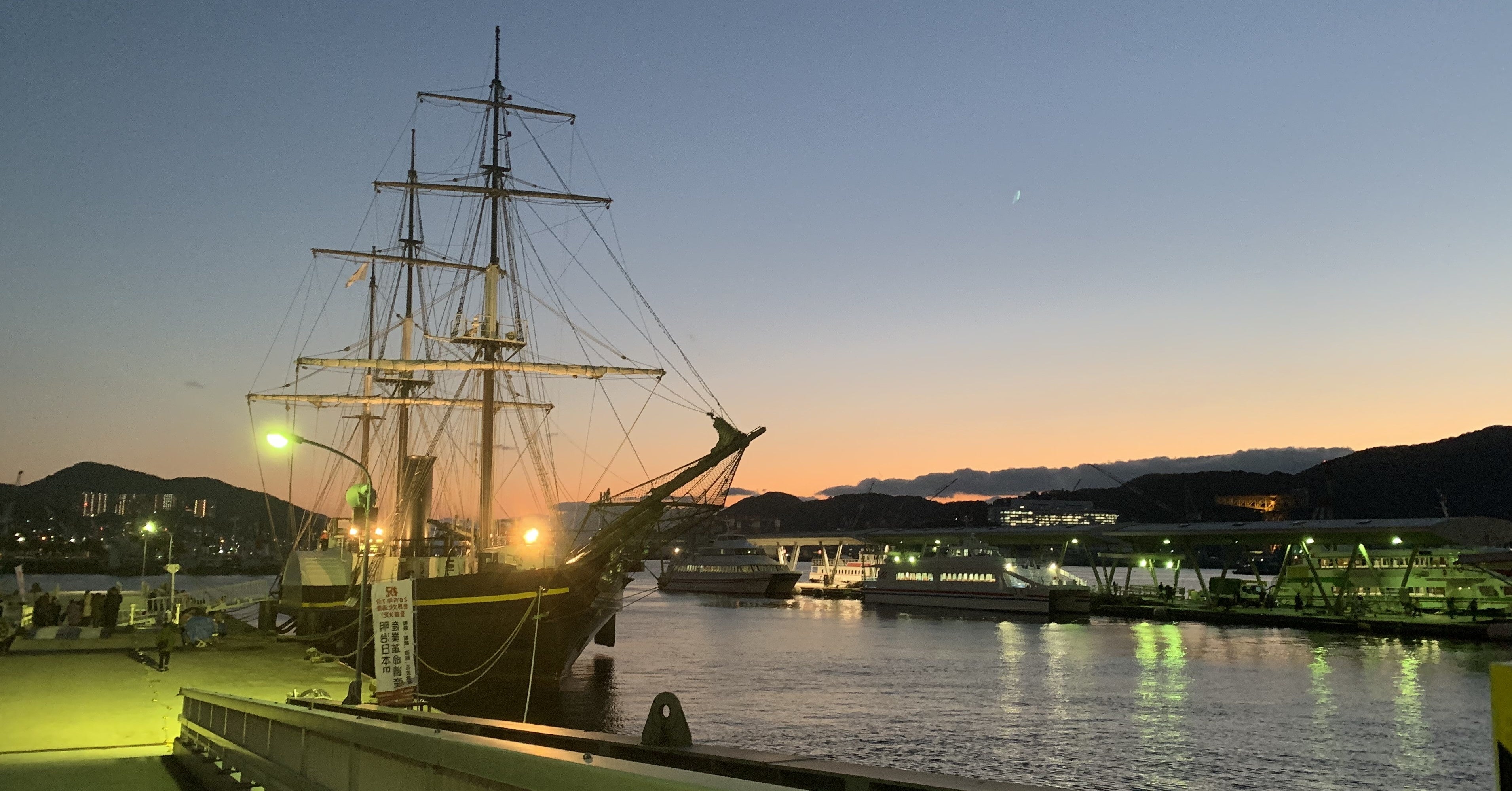 日本初の蒸気帆船を復元した「新・観光丸」に乗船。世界文化遺産とサンセットが楽しめる、一押しの長崎港クルーズ。2022年10月8日(土)には中国の伝統楽器「二胡」の演奏などが楽しめる佐賀・長崎DC特別クルーズイベントを開催。