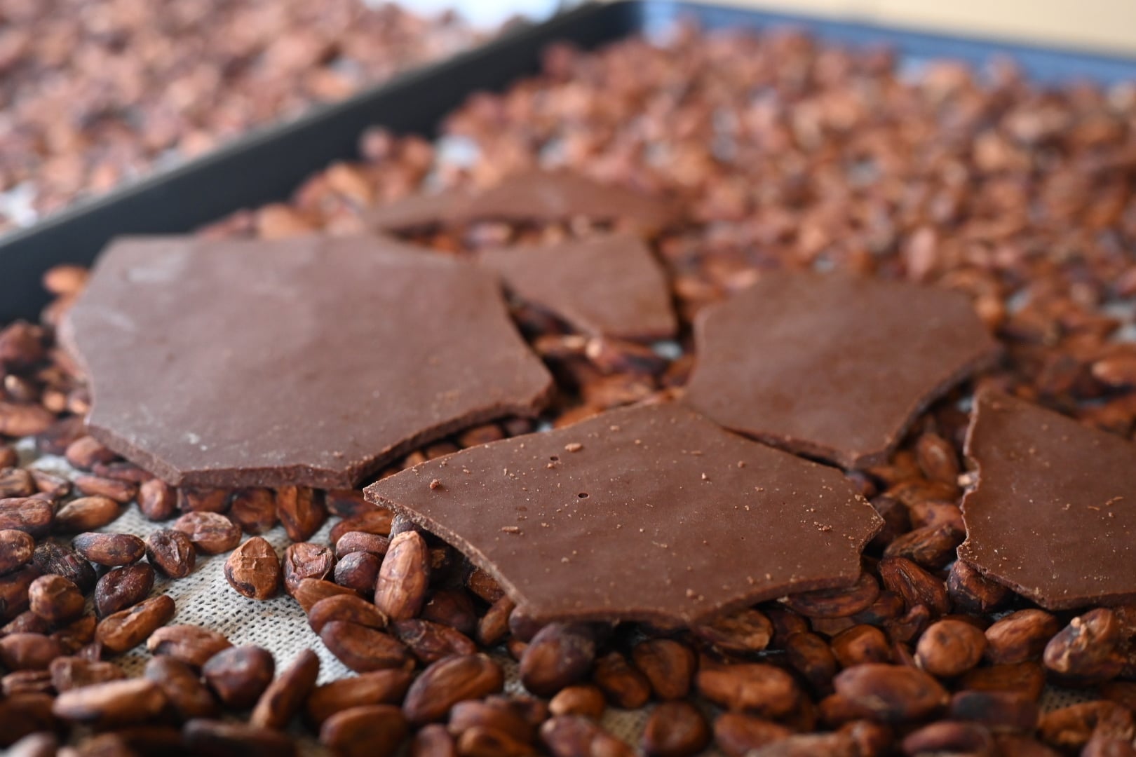 7月に園内に植えたカカオと同じトリニタリオ種のカカオを原料に用いて、クラフトチョコレートを作るワークショップを開催します。ご自分でお作りいただいたチョコレートはお持ち帰りいただけます。