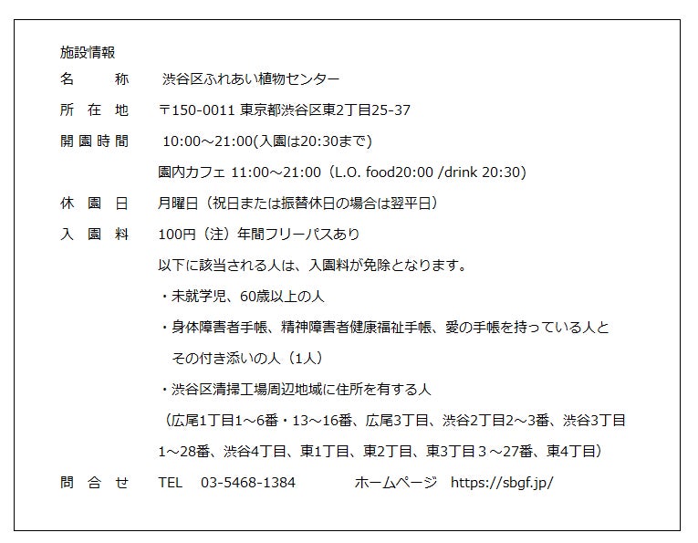 渋谷区ふれあい植物センター 1周年記念イベント概要
